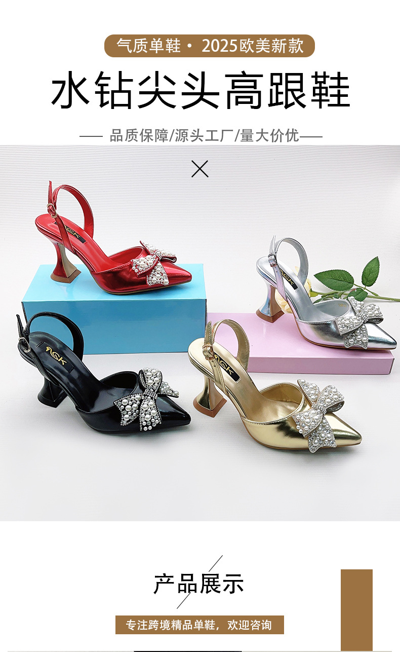 프렌치 샌들, 크로스보더 펌프스, 새로운 스타일의 스커트, 다재다능하고 우아한 포인티드 토 슈즈, 부드러운 라인스톤 틈새 여성화 도매스토어 가기