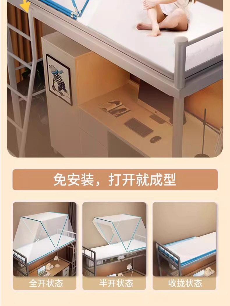학생 기숙사 접이식 모기장 2024 새로운 가정용 싱글 침대 설치가 필요없는 텐트 침대 커버 모기 방지 어린이 침대스토어 가기