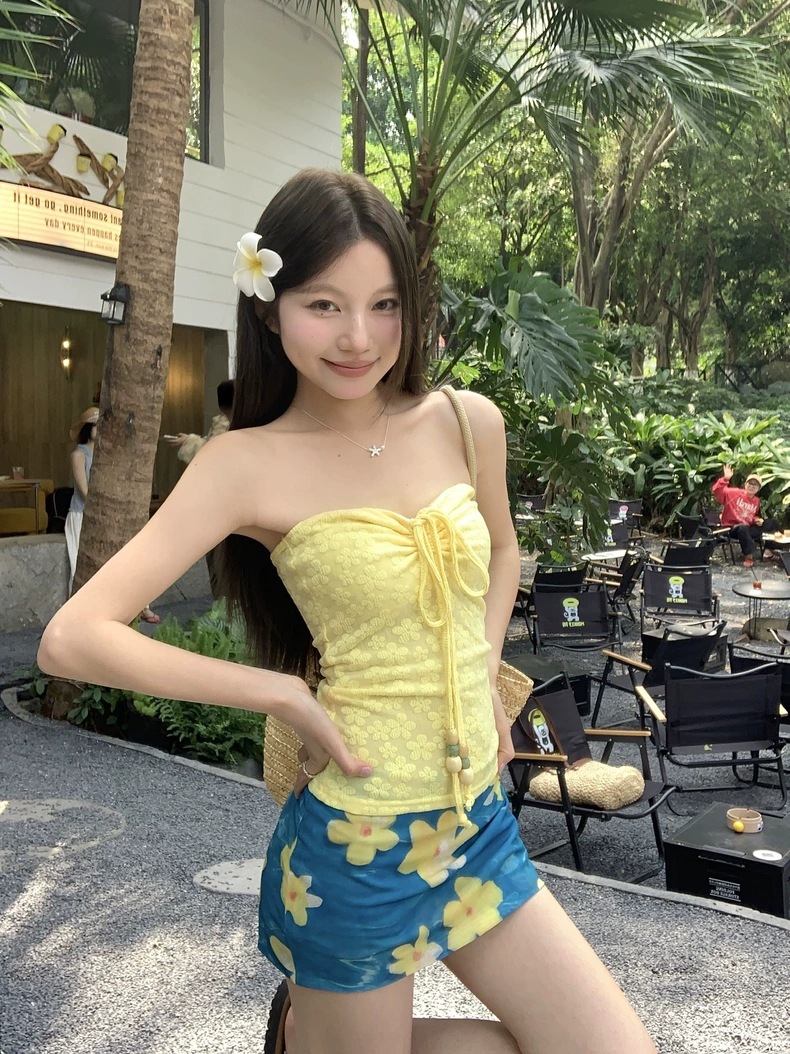 수영복 여성 리조트 스타일 스플릿 3피스 비키니 홀터넥 섹시한 튜브탑 3점 스타일 해변 휴가 온천스토어 가기