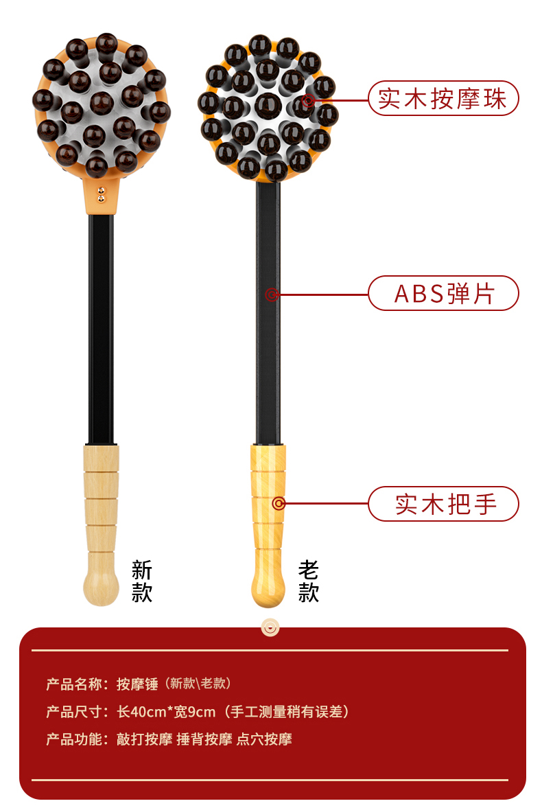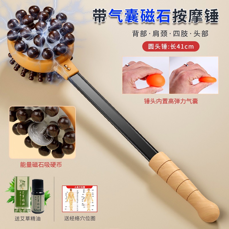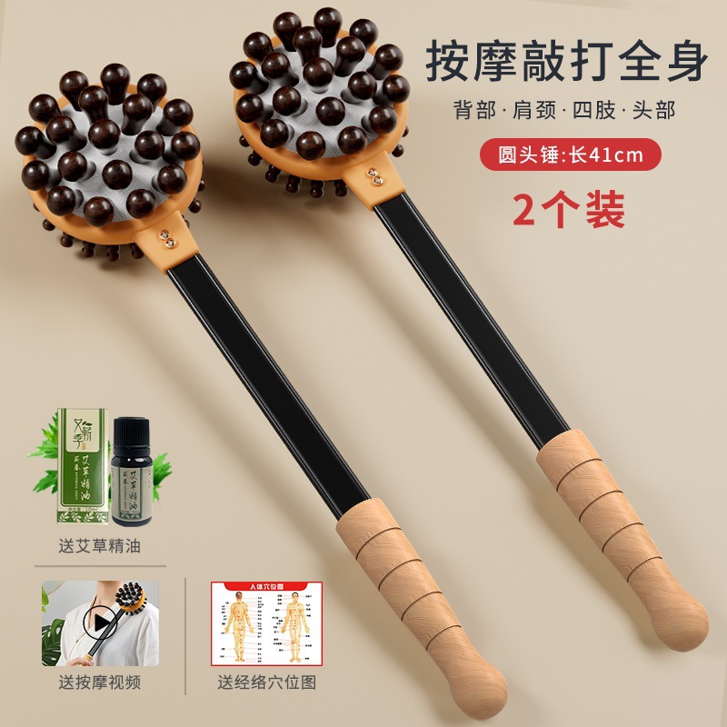 • 둥근머리 양면 마사지 망치 2개 [쑥 에센셜 오일 무료 + 경혈 지도]