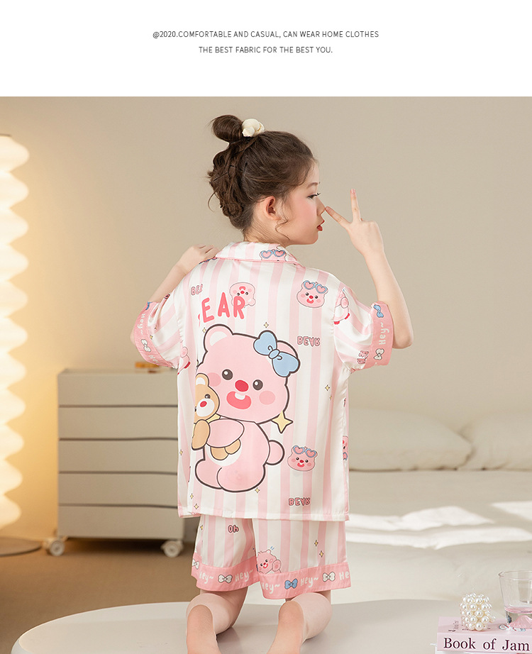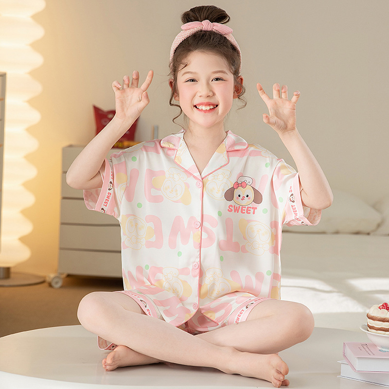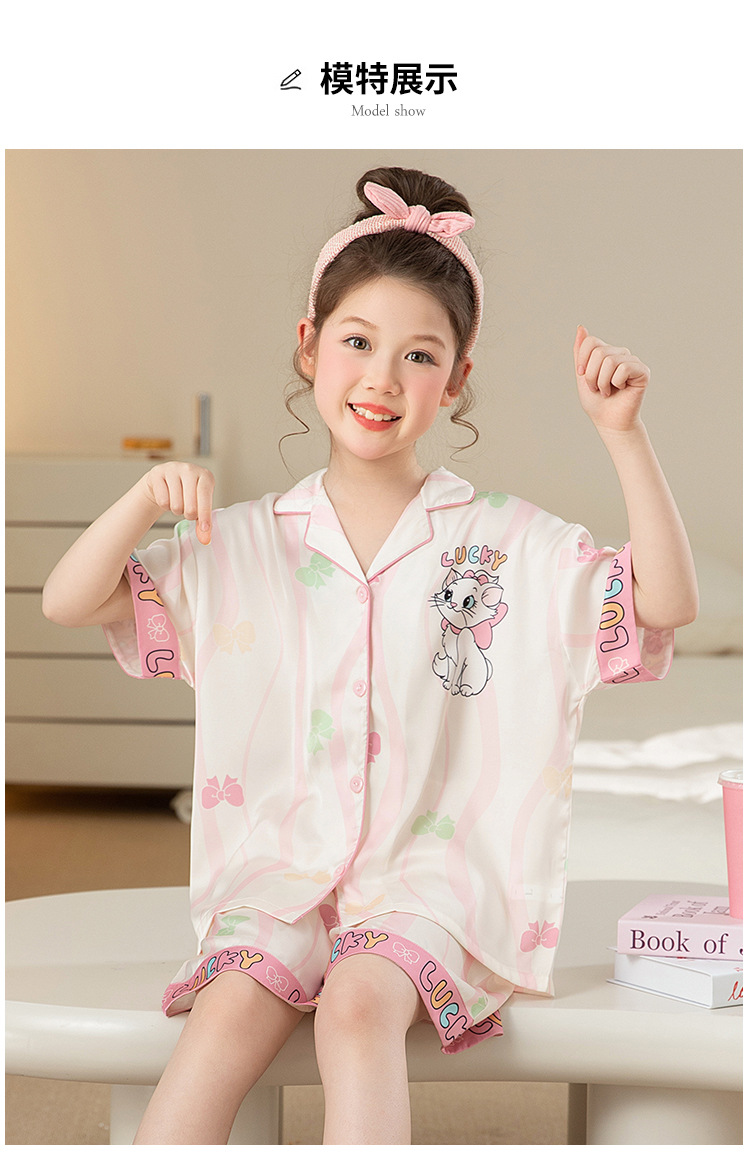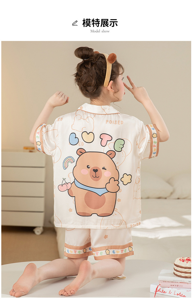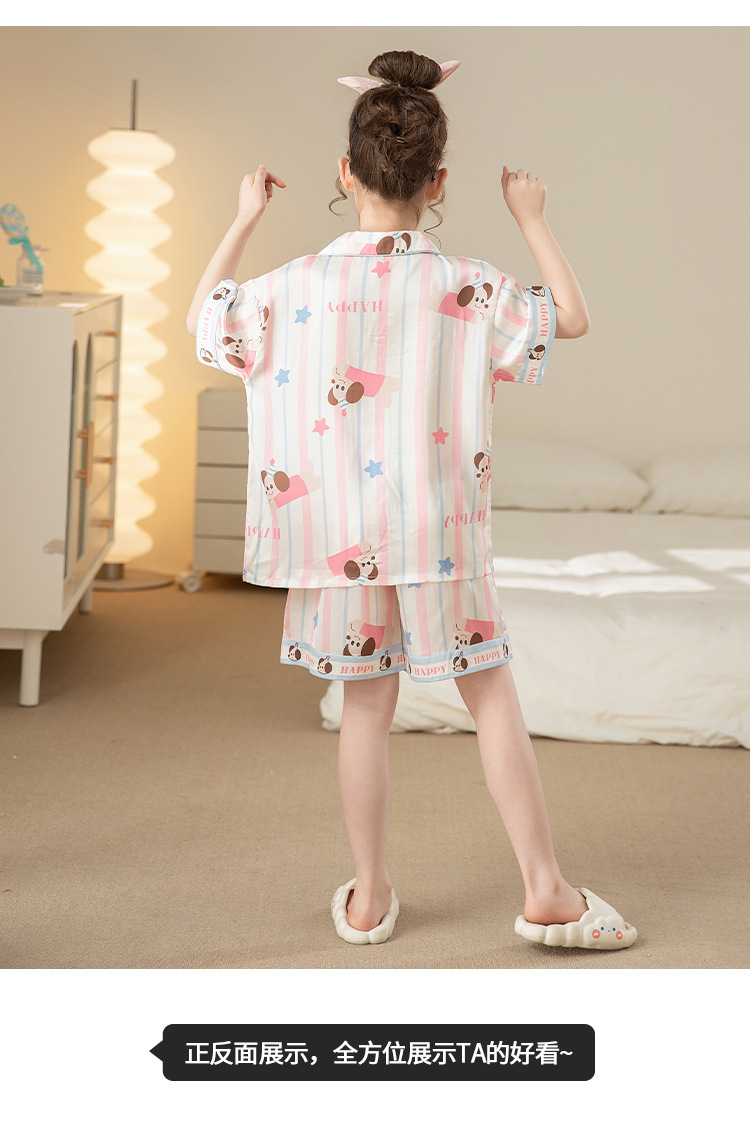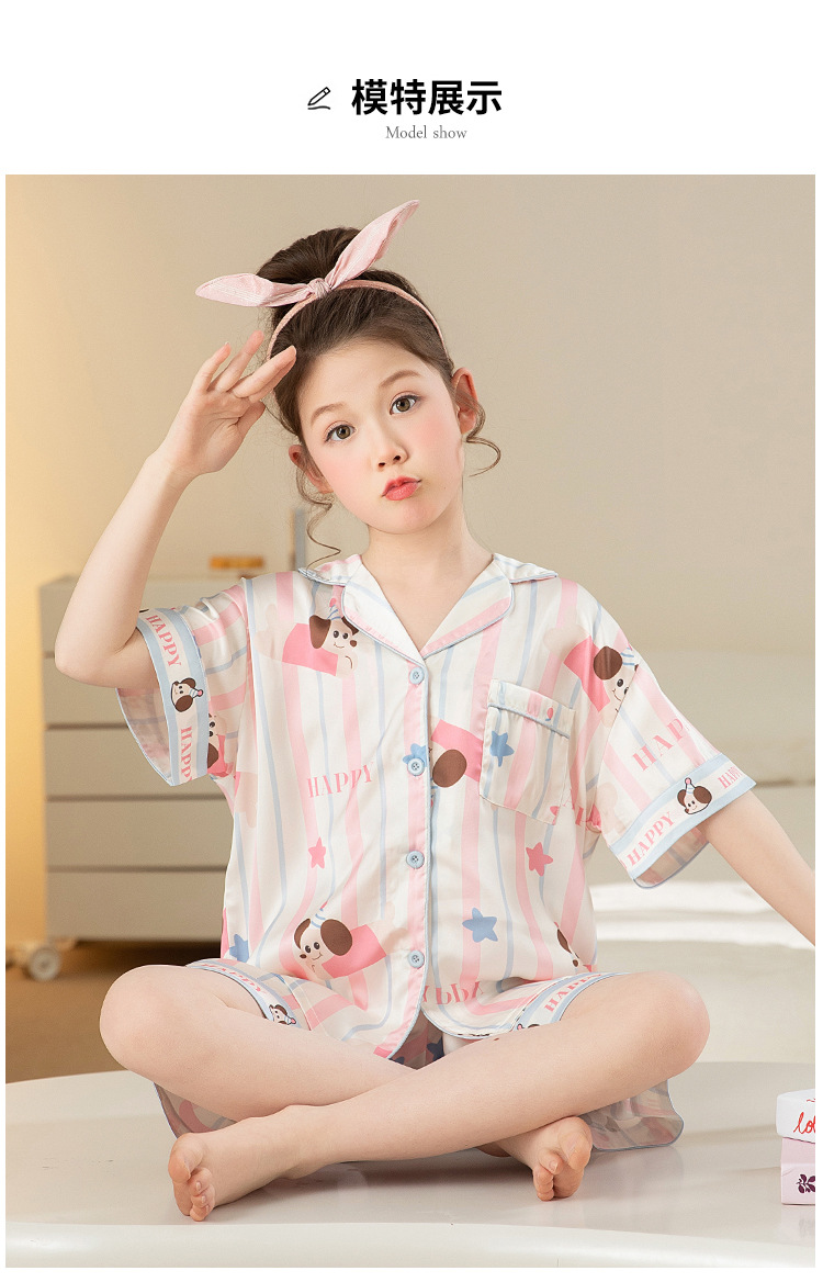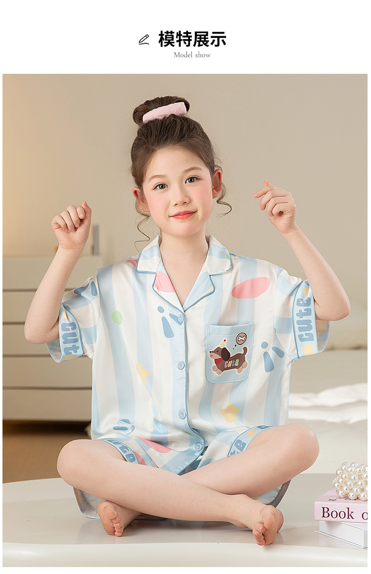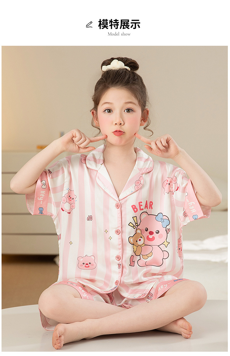 어린이 잠옷 여름 얼음 실크 소녀 얇은 반팔 여름 스타일 소녀 유행 중대형 어린이 아기 가정 의류 세트스토어 가기