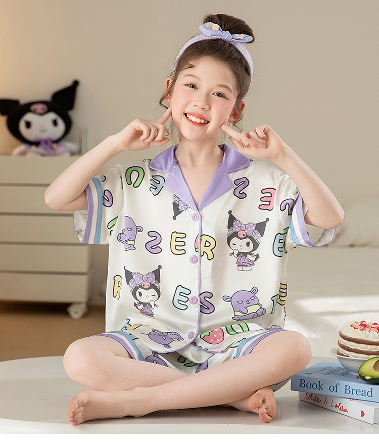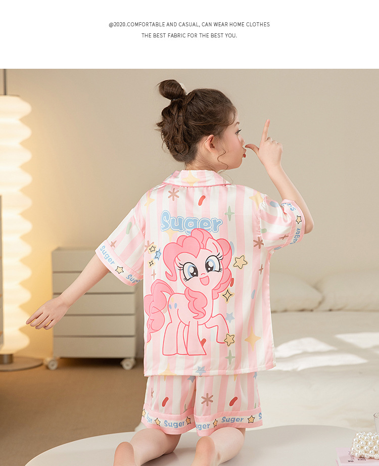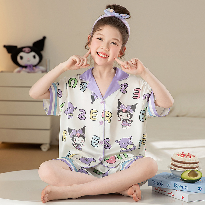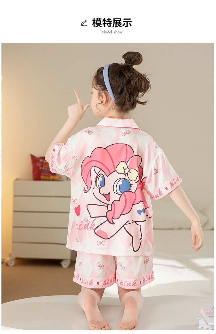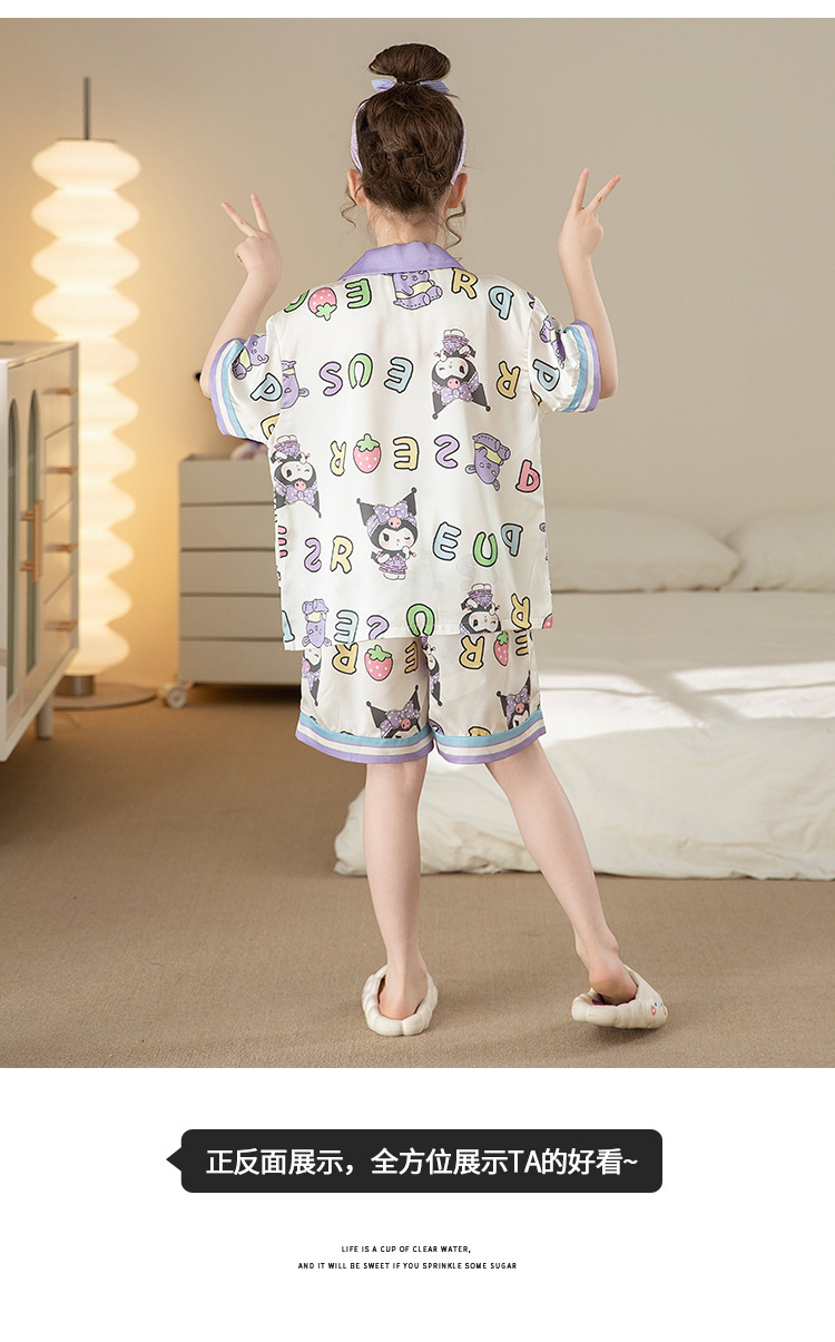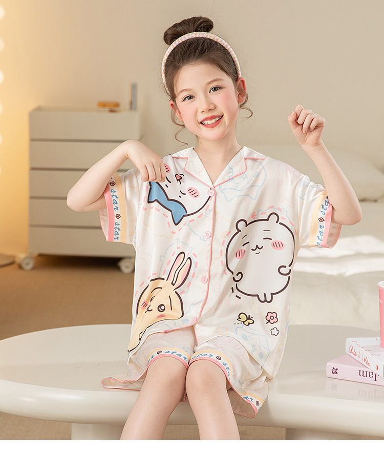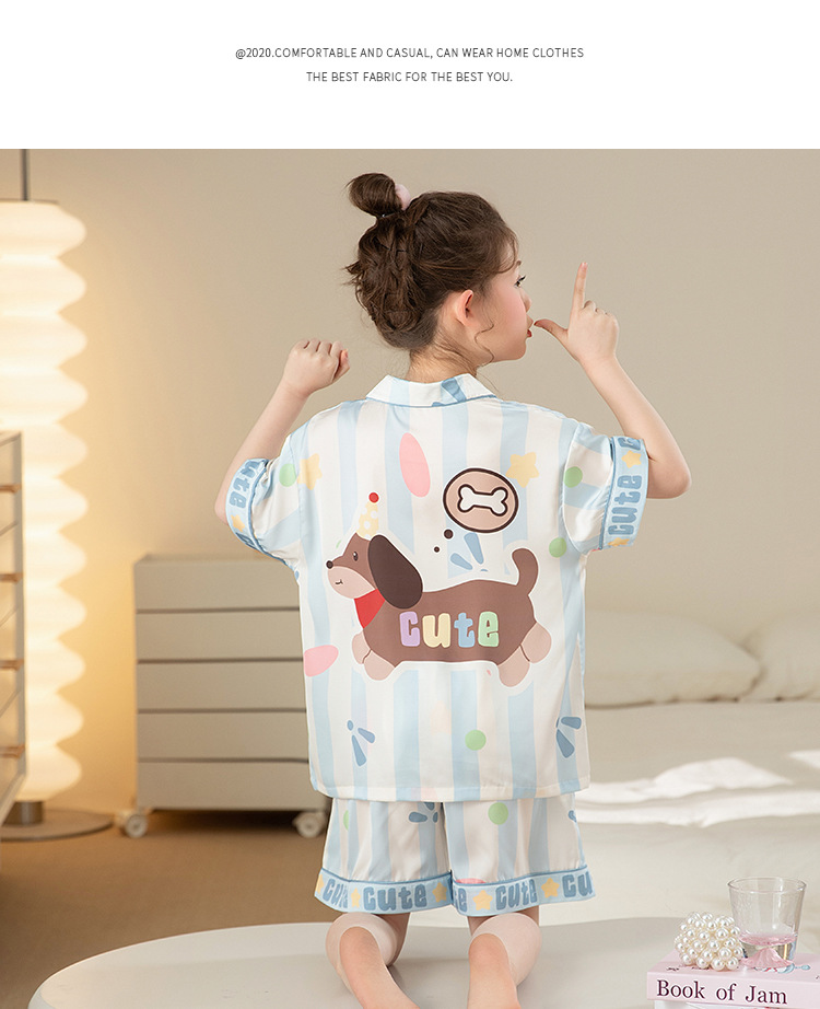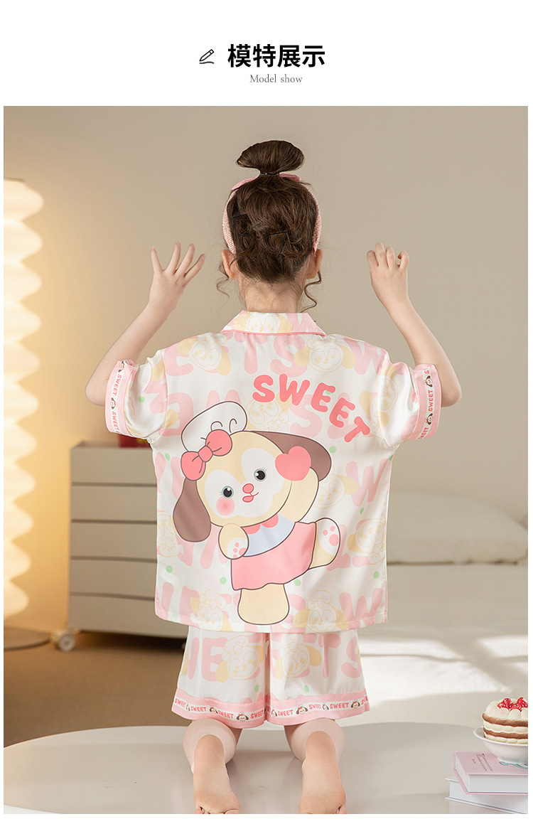 어린이 잠옷 여름 얼음 실크 소녀 얇은 반팔 여름 스타일 소녀 유행 중대형 어린이 아기 가정 의류 세트스토어 가기