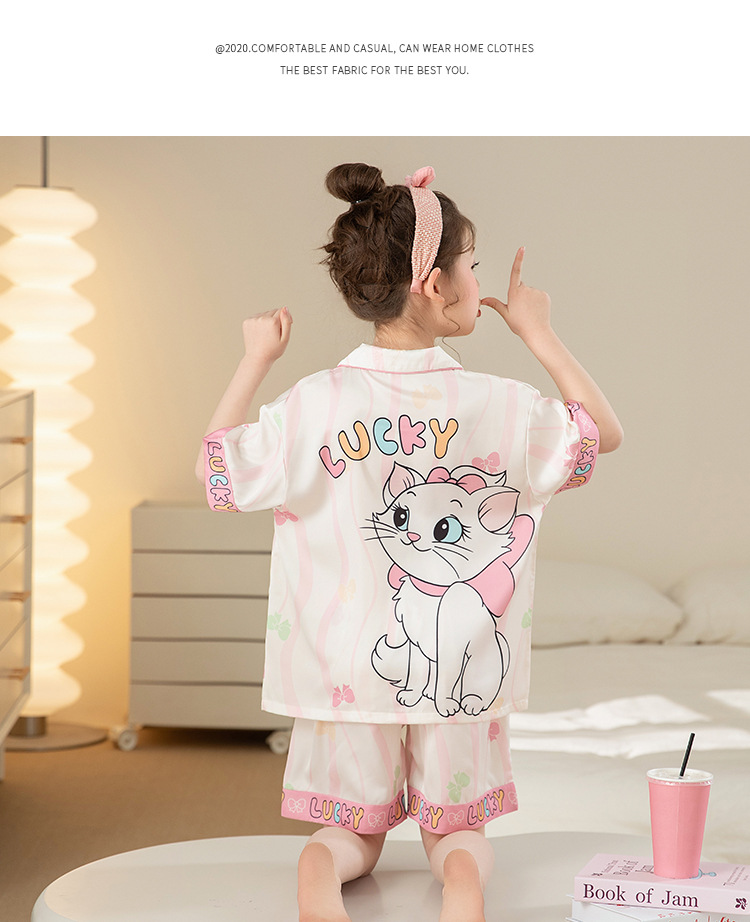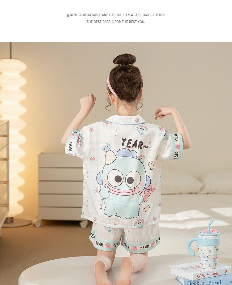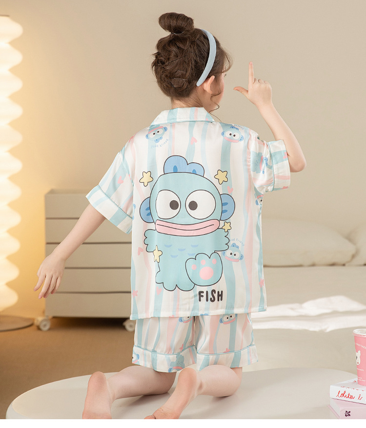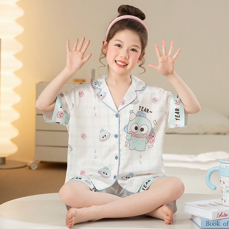 어린이 잠옷 여름 얼음 실크 소녀 얇은 반팔 여름 스타일 소녀 유행 중대형 어린이 아기 가정 의류 세트