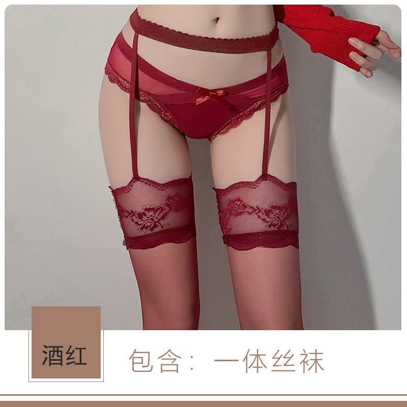 DZ Guiro 섹시 란제리 순수한 욕망 시스루 무릎 스타킹 섹시 로우 웨이스트 올인원 가터 액세서리 세트 8106