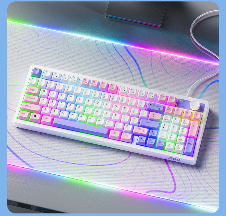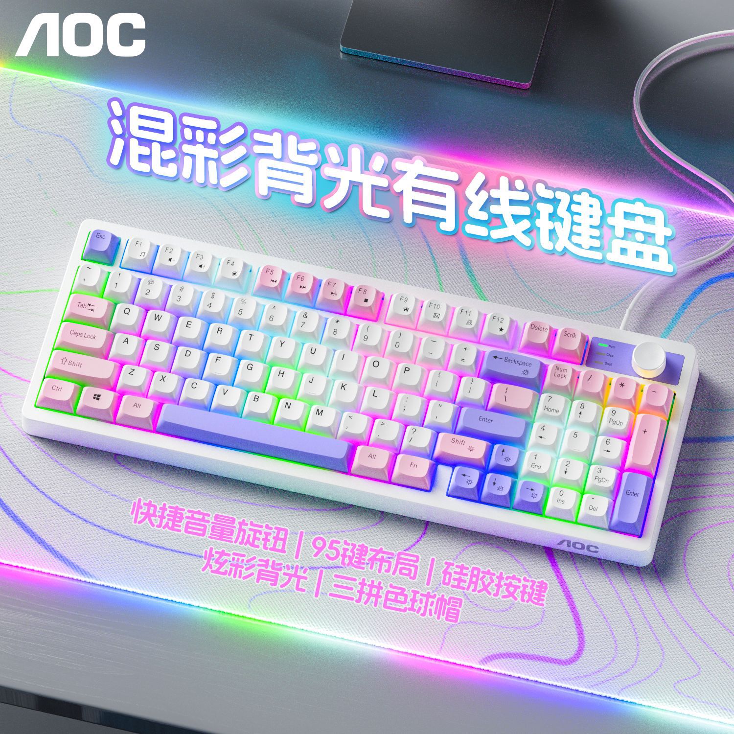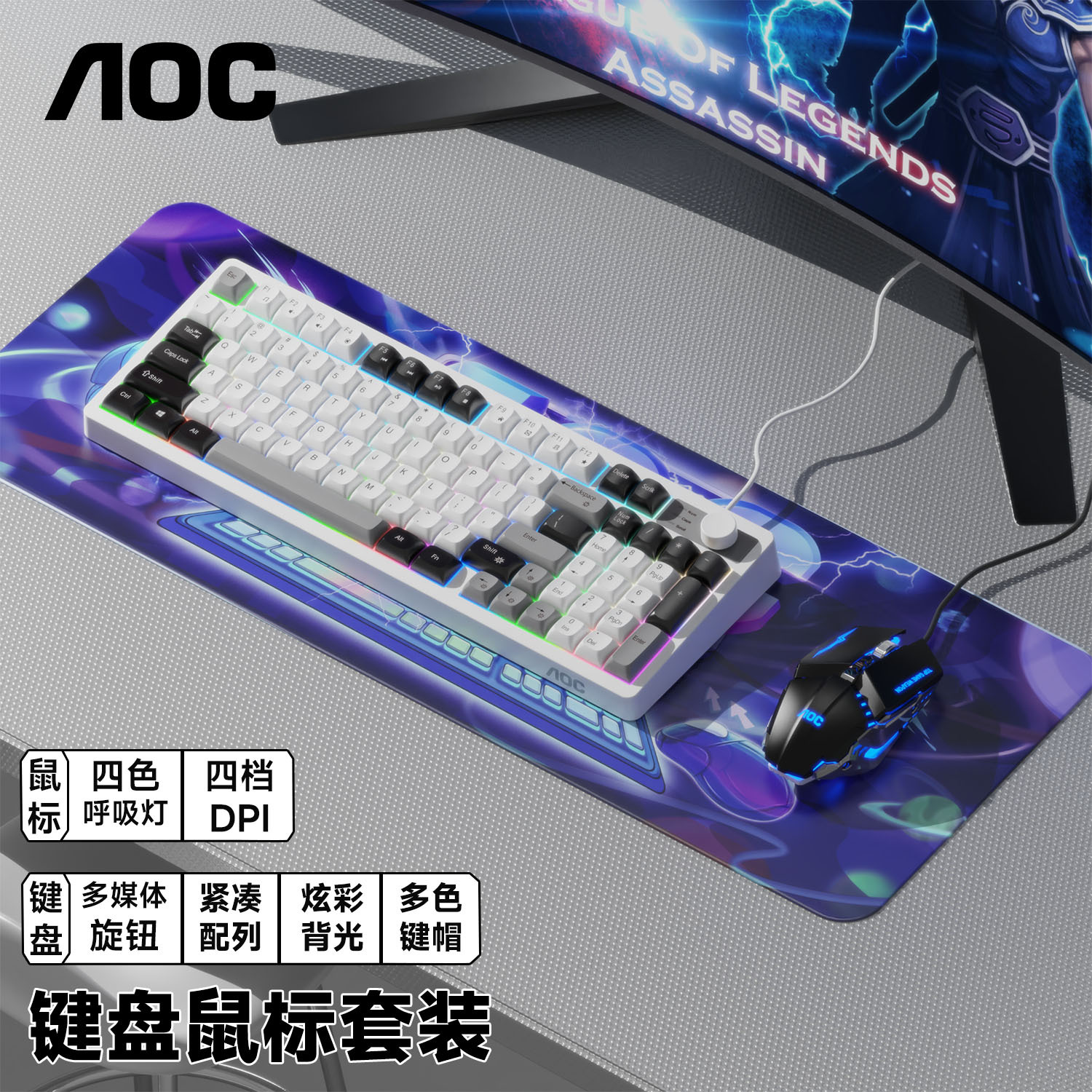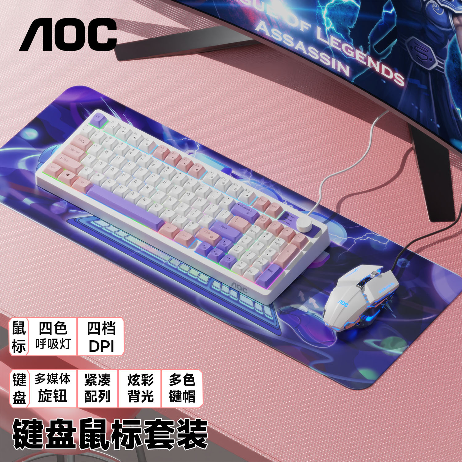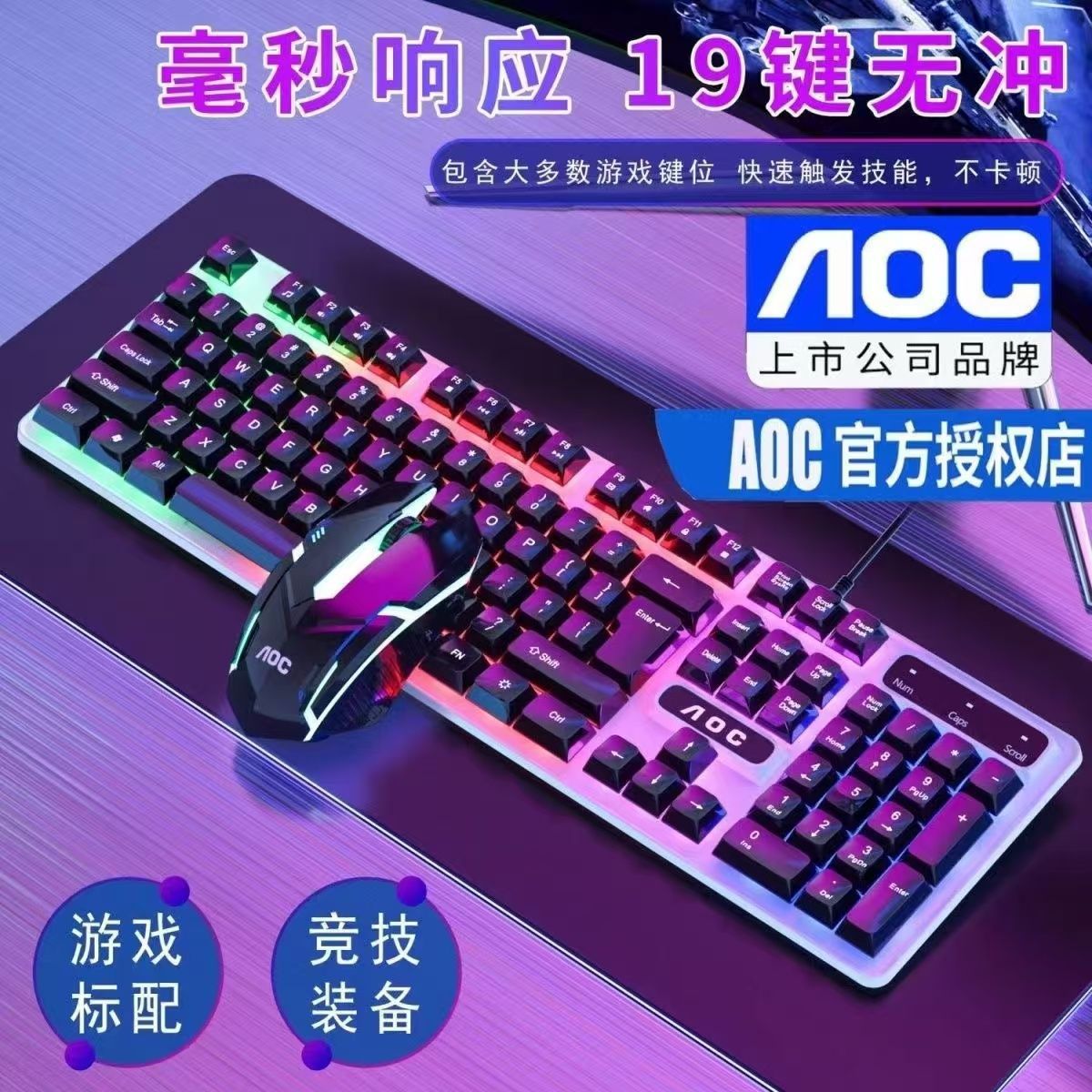 AOC 발광 키보드 및 마우스 세트 유선 기계적 느낌 데스크탑 노트북 소녀 사무실 e-스포츠 게임스토어 가기