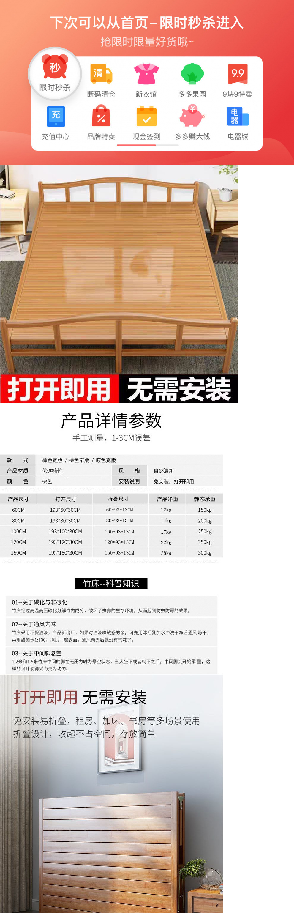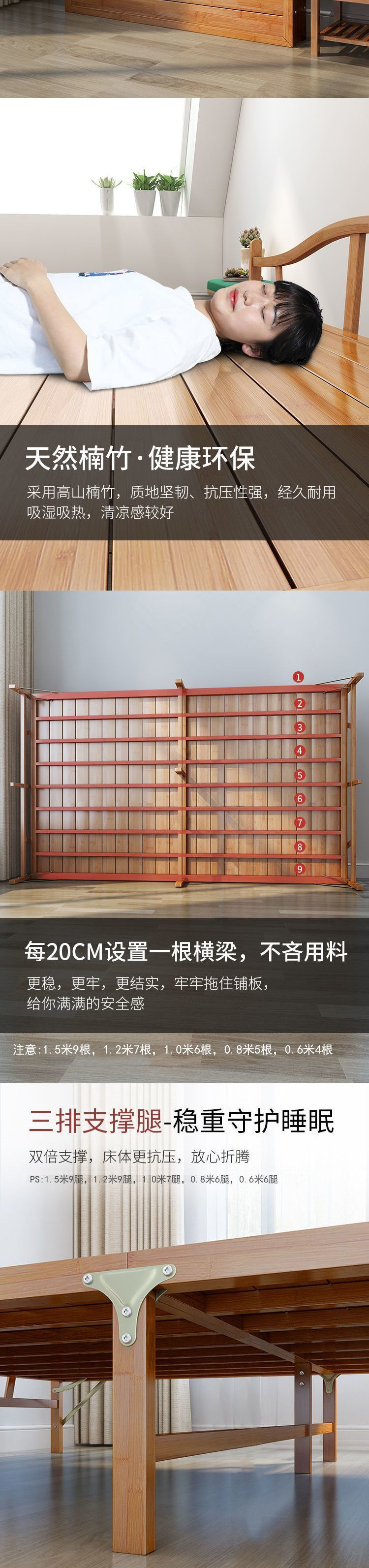 대나무 침대 접이식 침대 싱글 더블 홈 점심 시간 시원한 침대 성인 임대 주택 간단한 단단한 나무 침대 대나무 침대스토어 가기