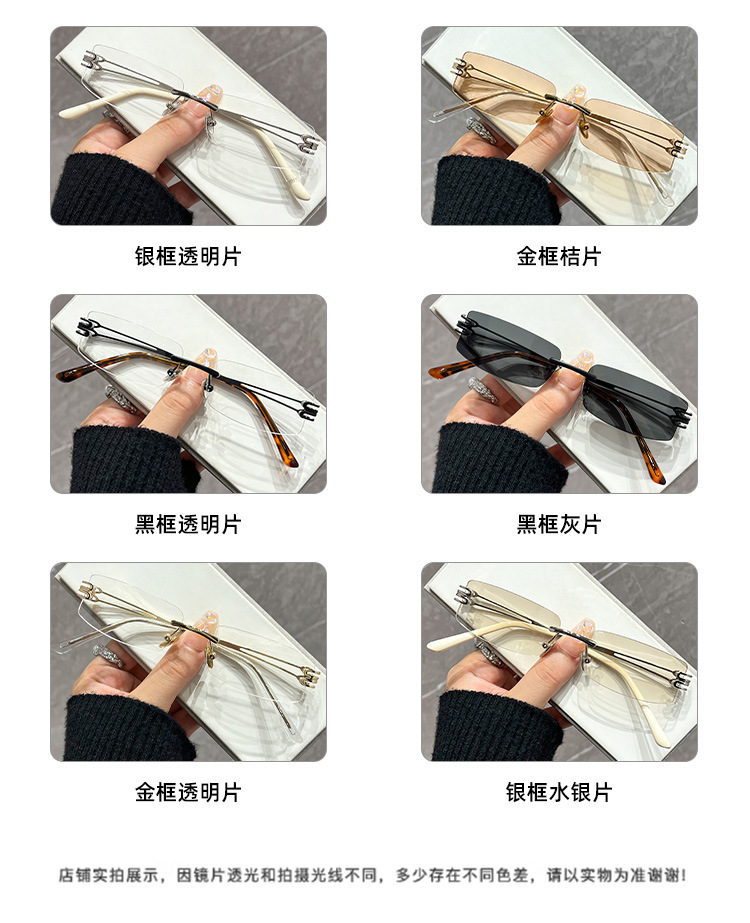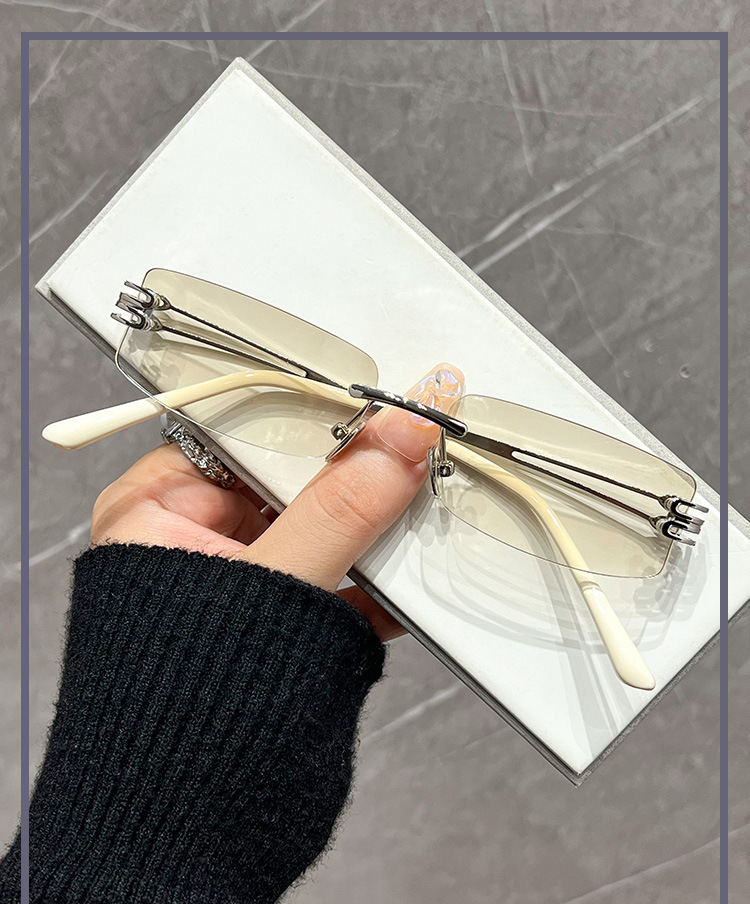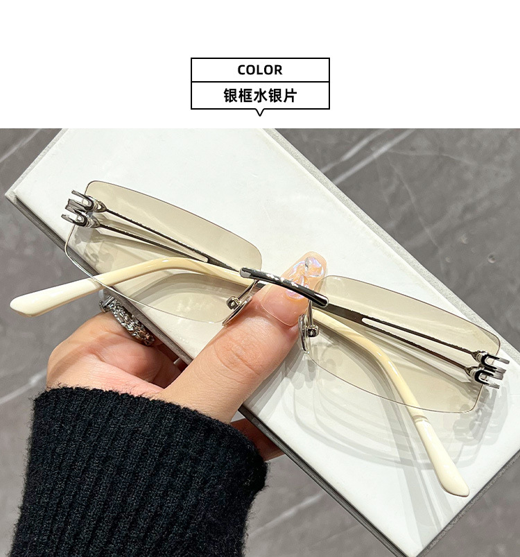 Jenny의 여성용 무테 선글라스, 수은색 Y2K 핫걸 스타일 남성용 고급 GM 소형 사각형 선글라스스토어 가기