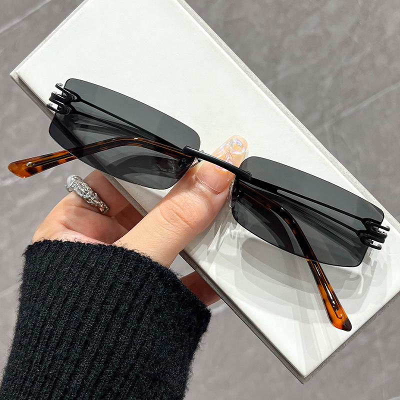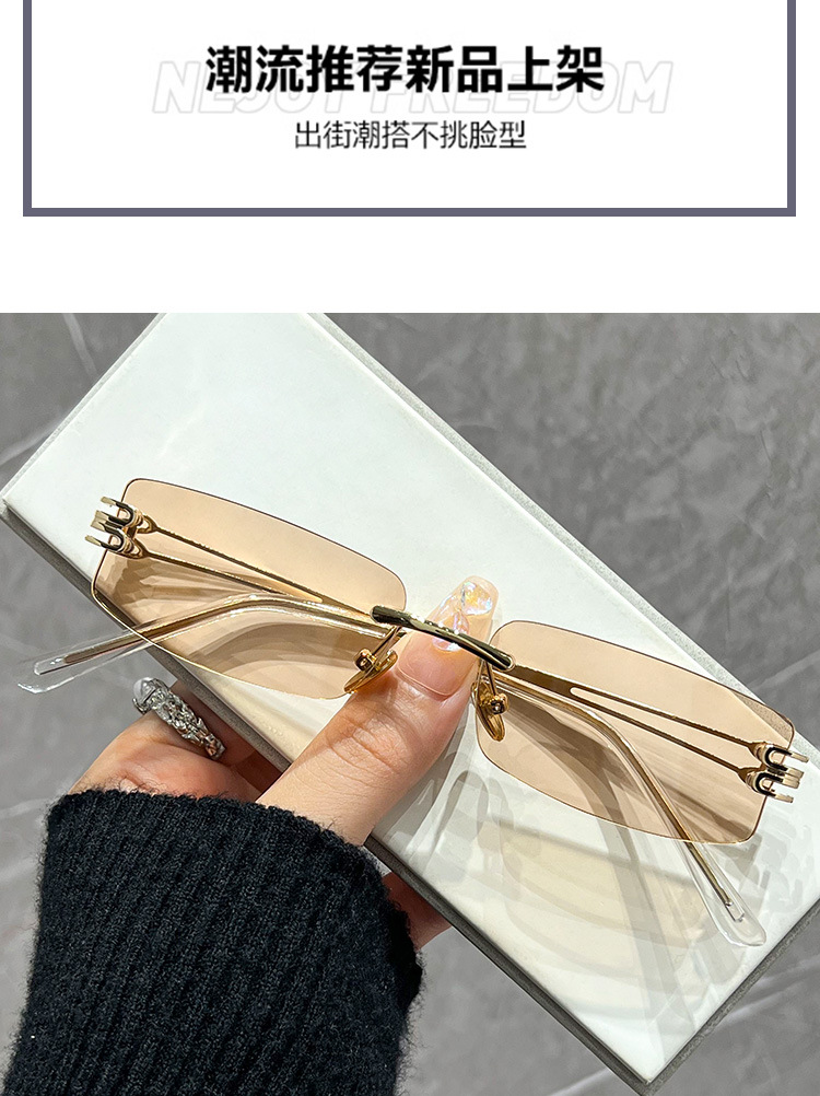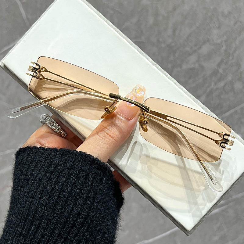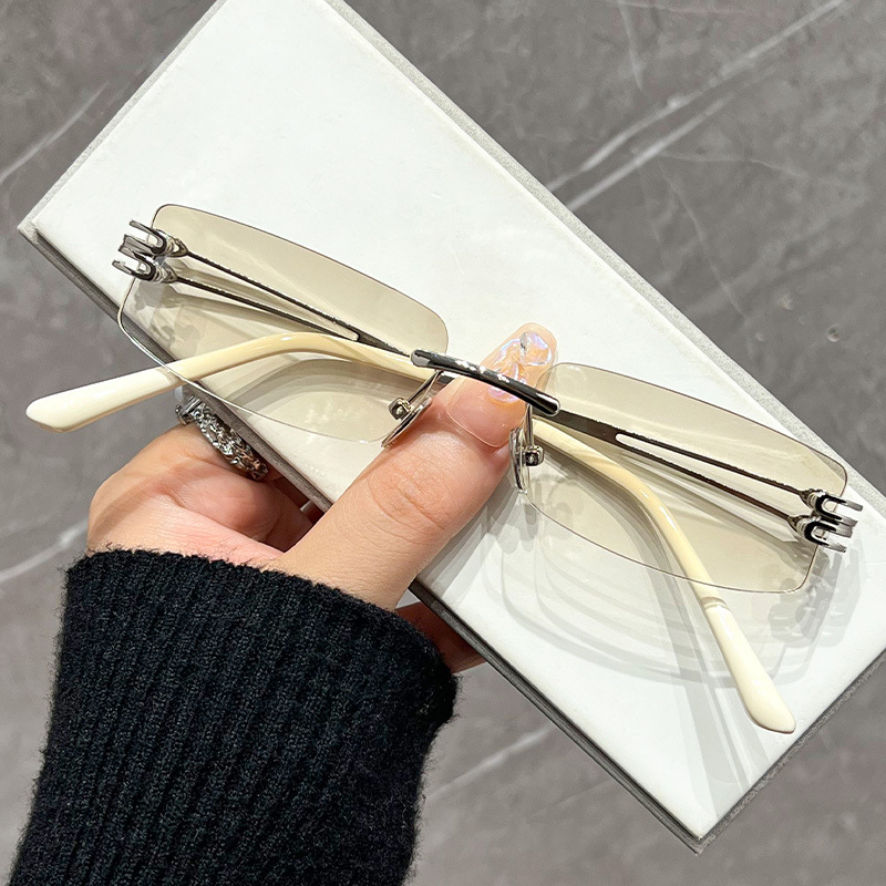 Jenny의 여성용 무테 선글라스, 수은색 Y2K 핫걸 스타일 남성용 고급 GM 소형 사각형 선글라스