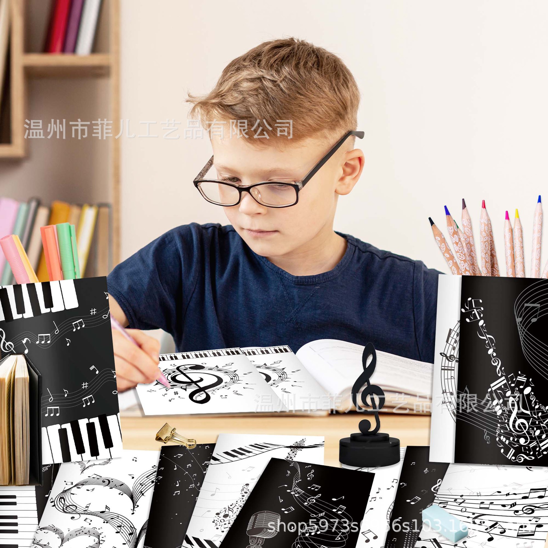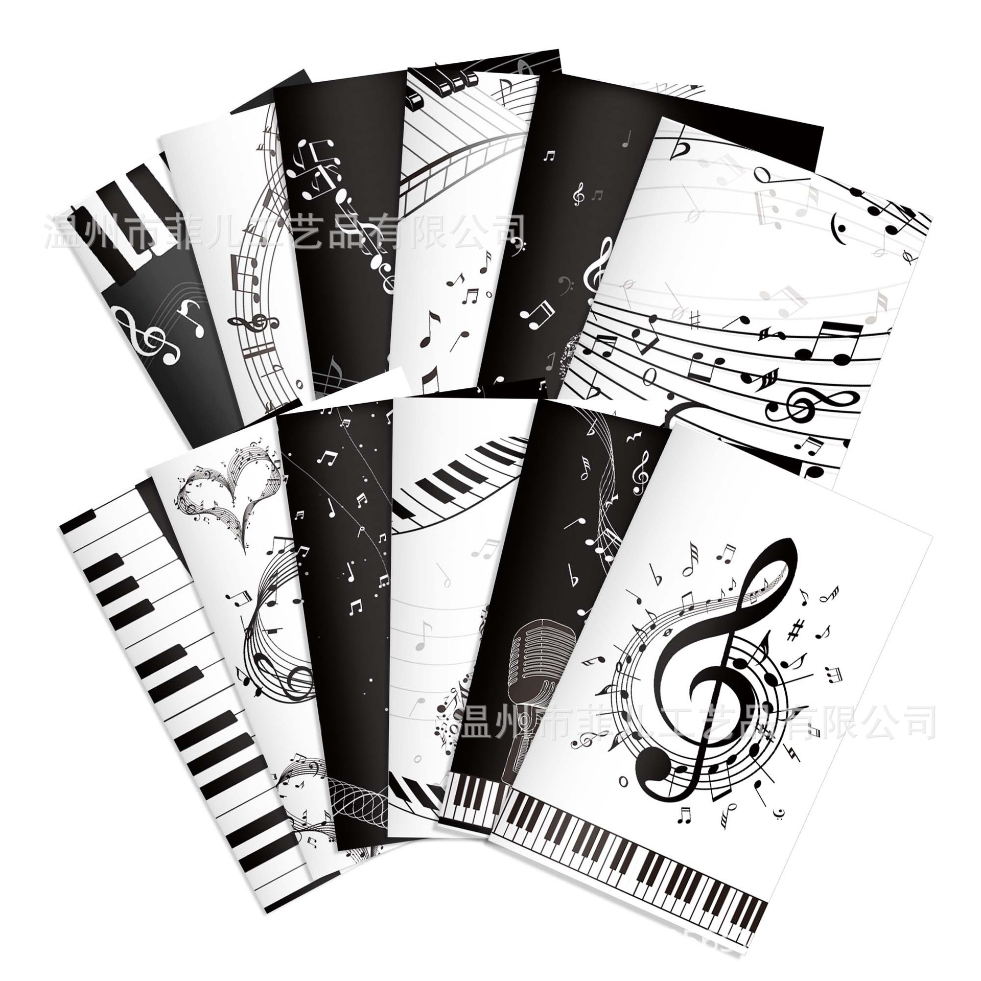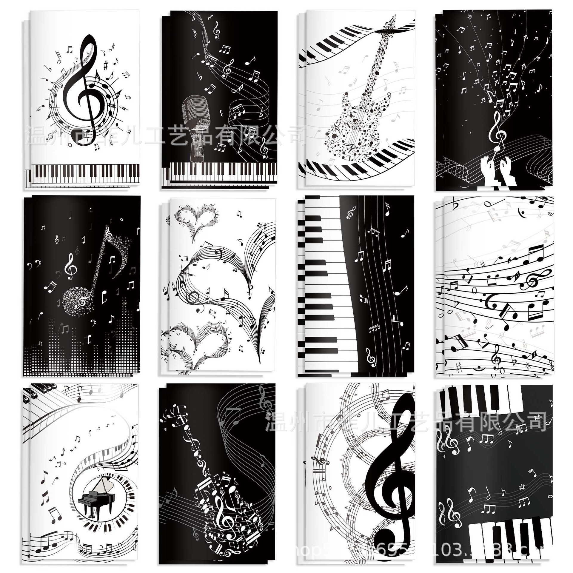 JS048 음악 노트 포켓 메모장 줄 노트 블랙 앤 화이트 키 장식 학생 노트