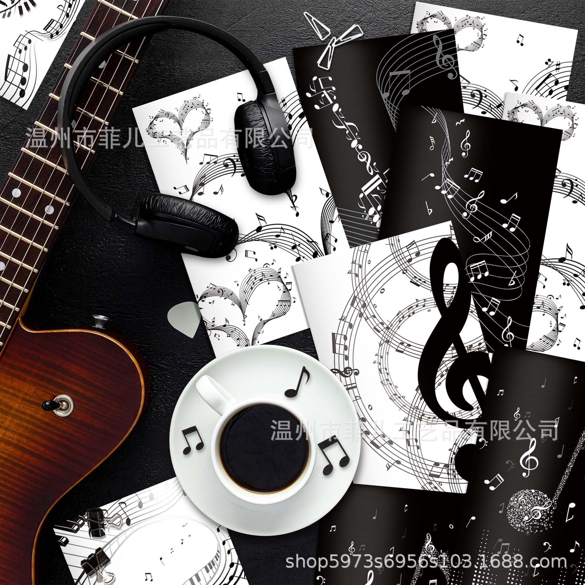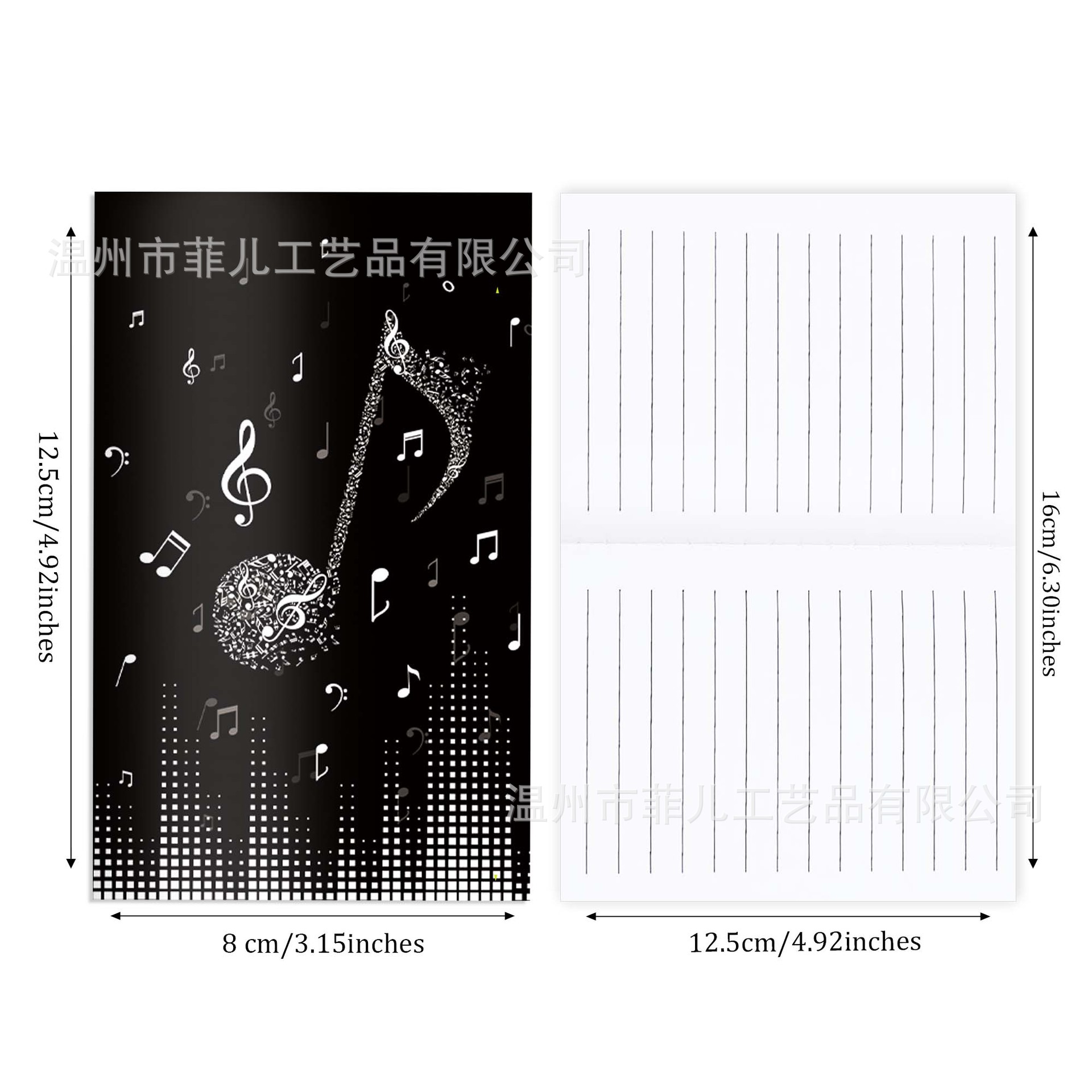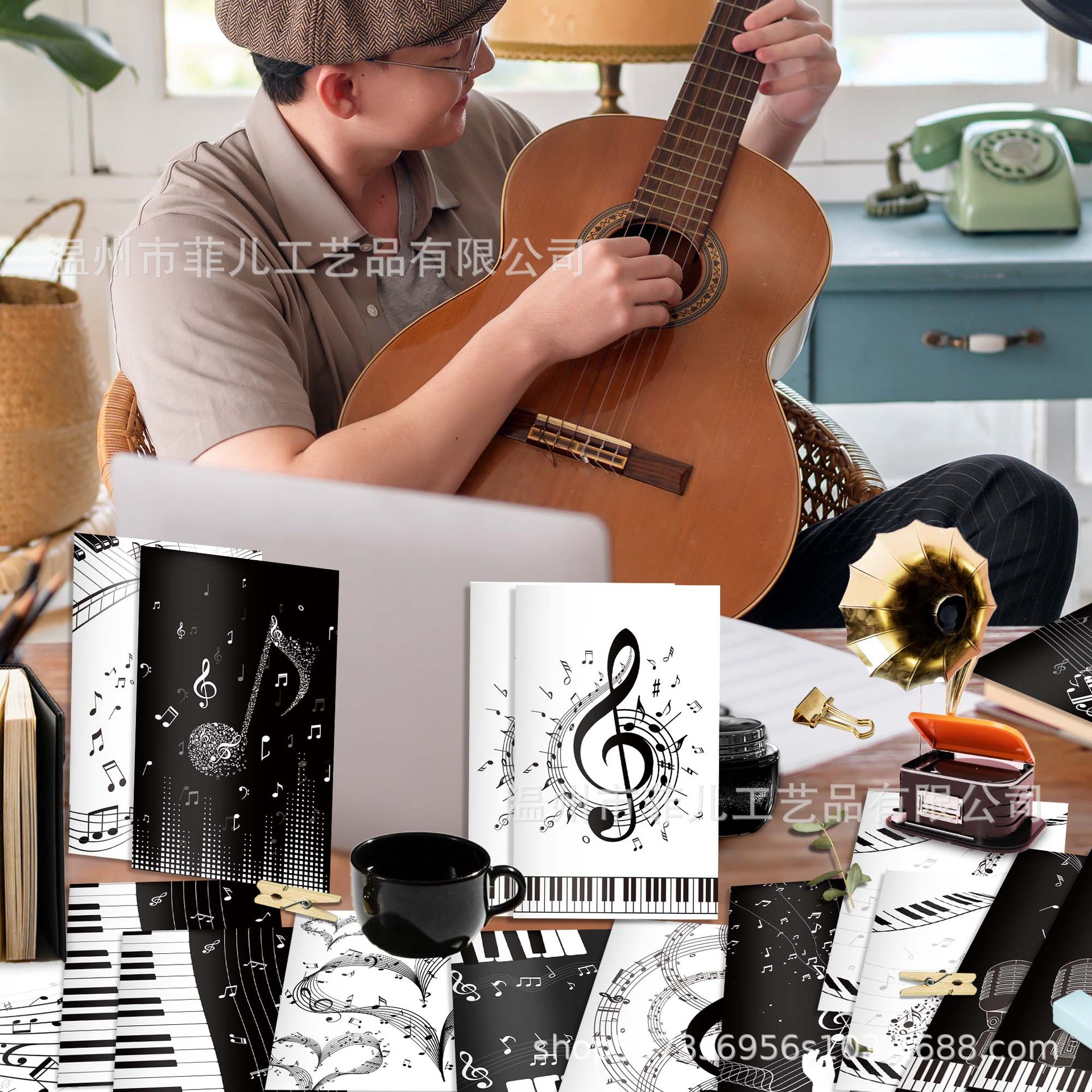 JS048 음악 노트 포켓 메모장 줄 노트 블랙 앤 화이트 키 장식 학생 노트