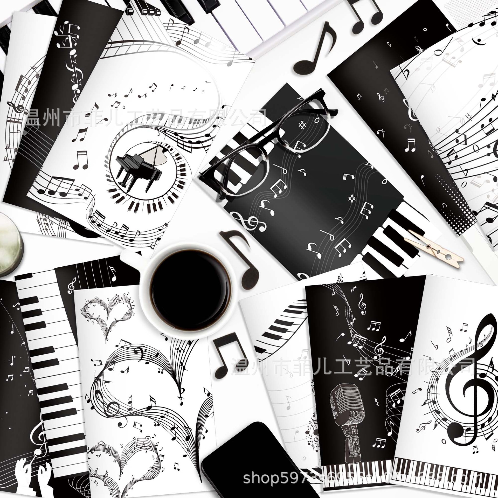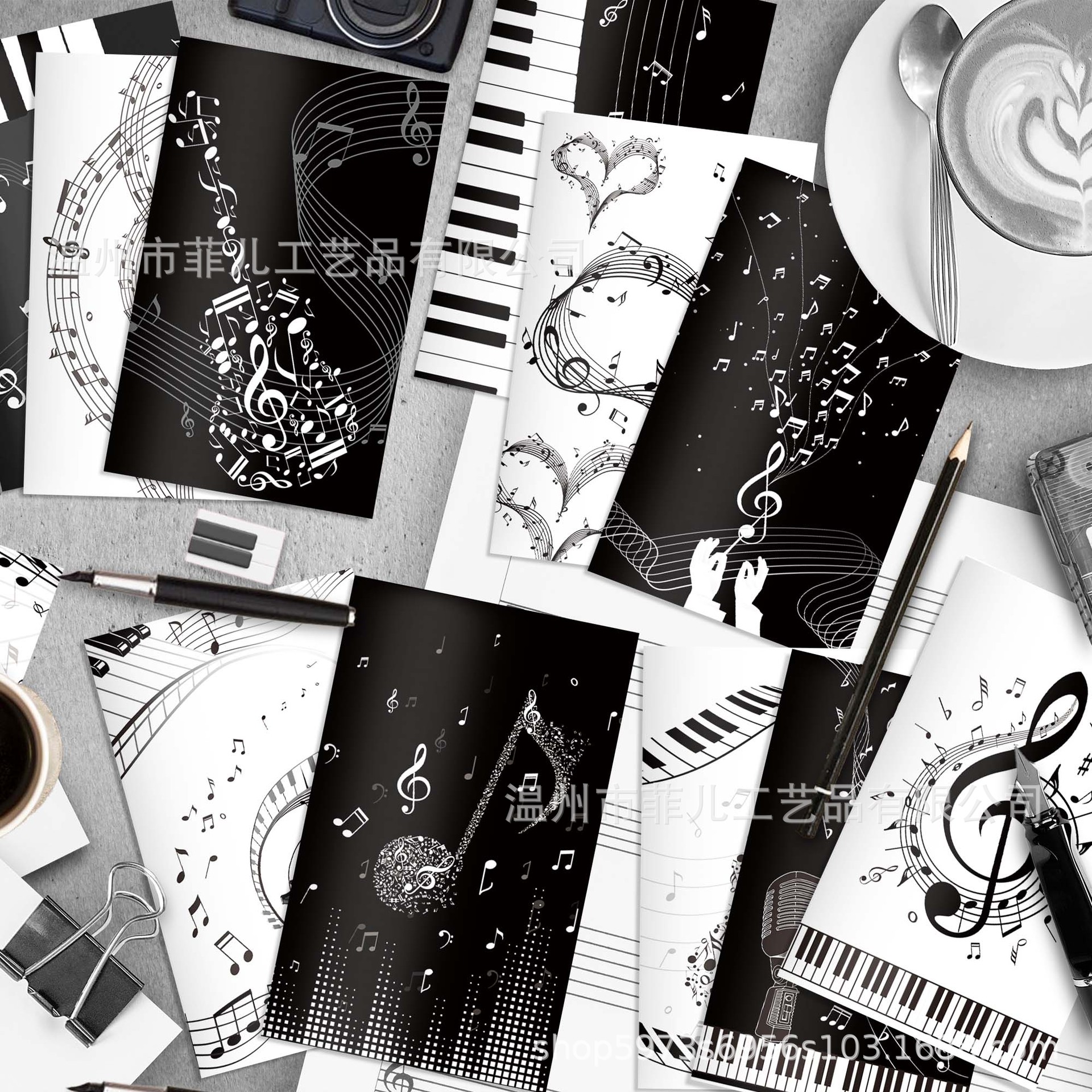 JS048 음악 노트 포켓 메모장 줄 노트 블랙 앤 화이트 키 장식 학생 노트스토어 가기
