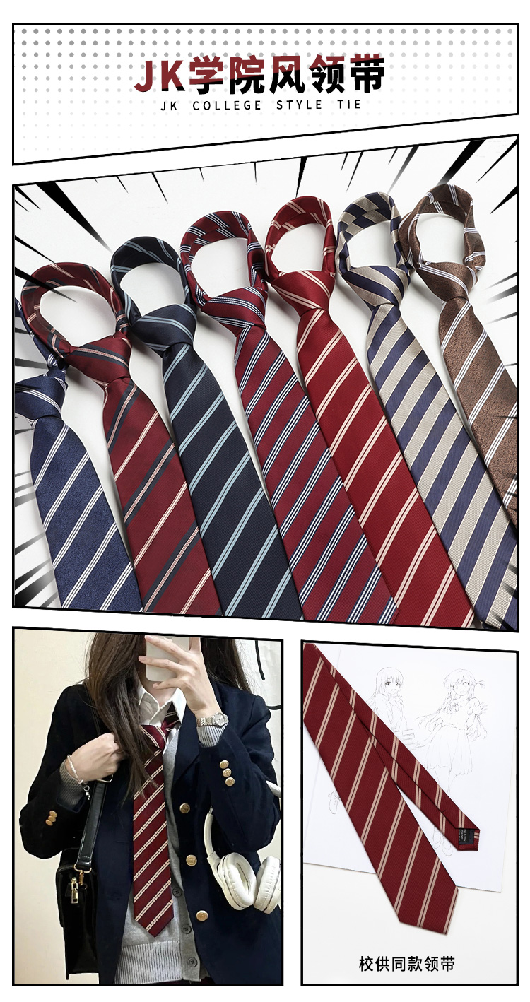 레드 스트라이프 게으른 무료 브라운 커피 일본 jk 대학 스타일 넥타이 여자 학교 파란색 손으로 묶은 넥타이