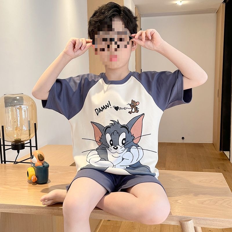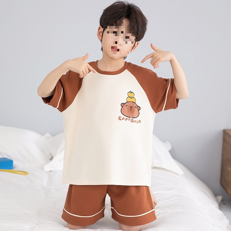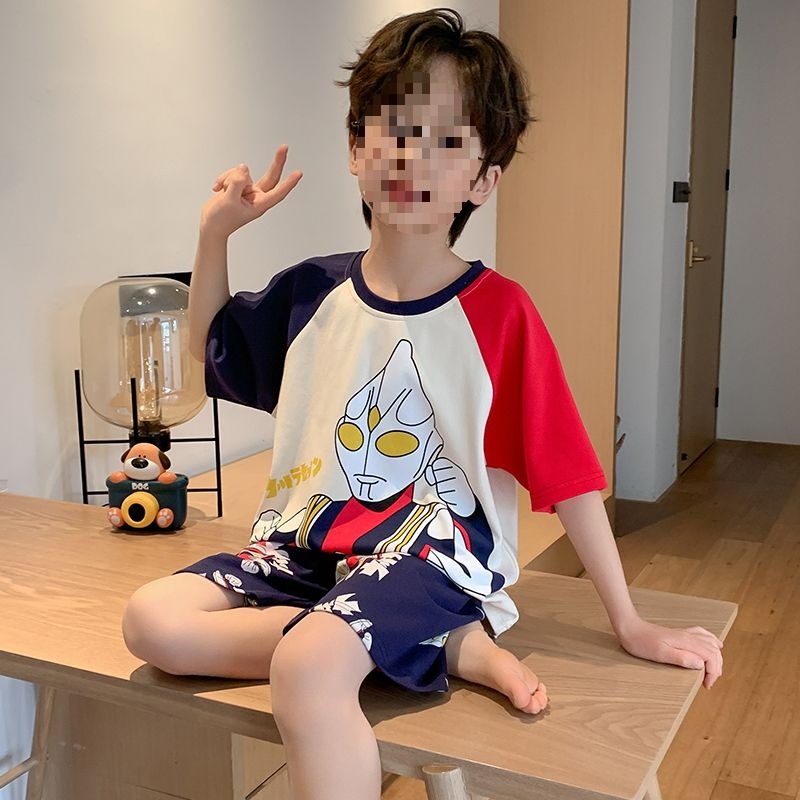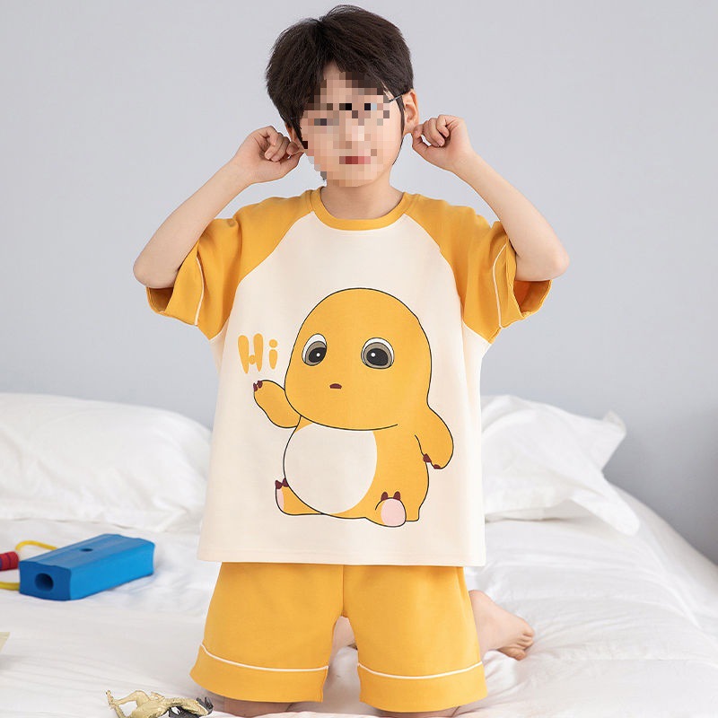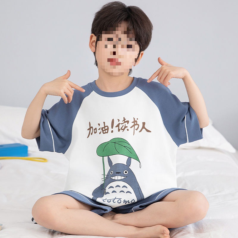 소년 잠옷 어린이 여름 새 시즌 얇은 순면 반팔 양복 어린 소년 세련된 큰 어린이 귀여운 가정 옷스토어 가기