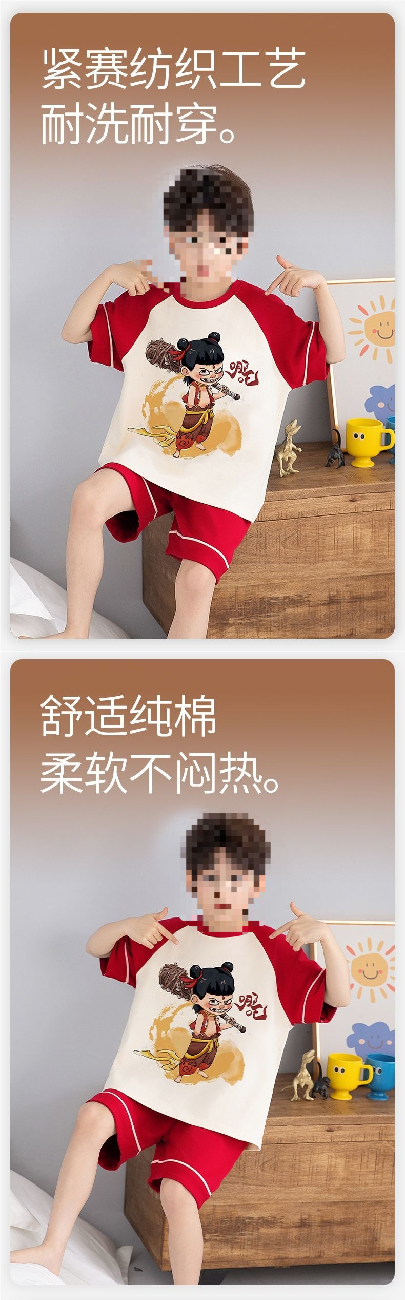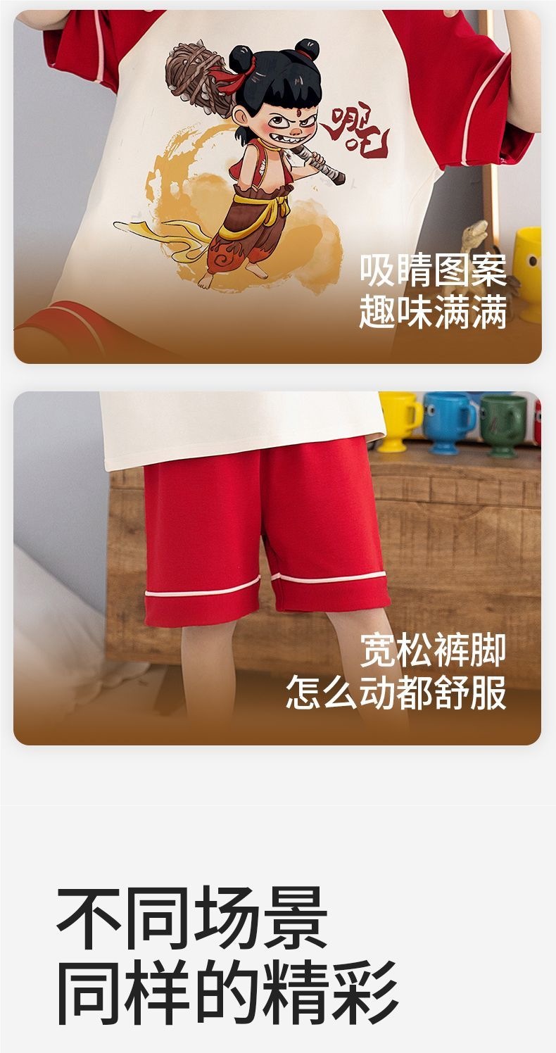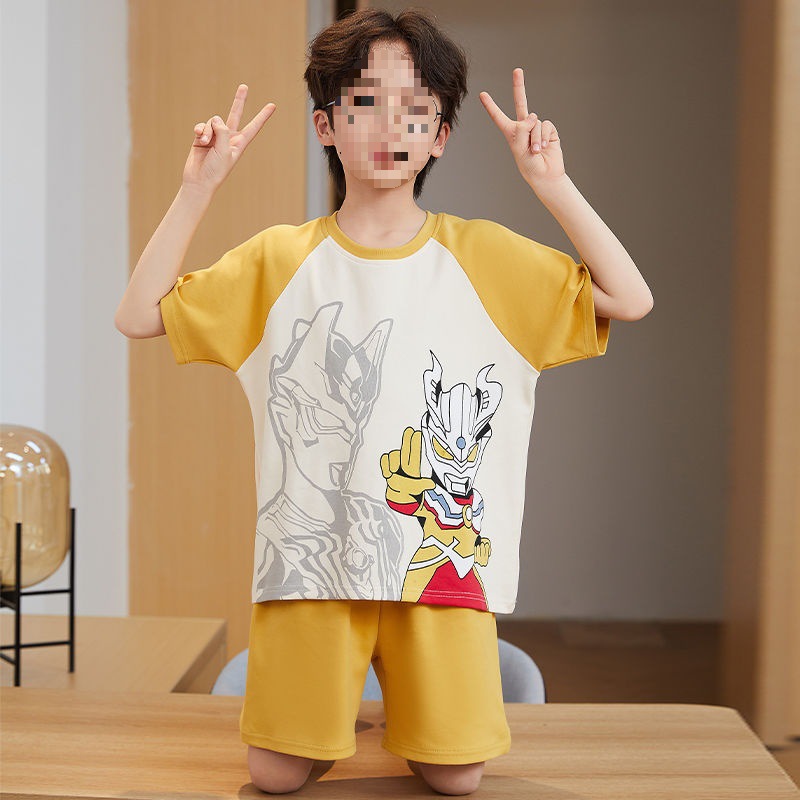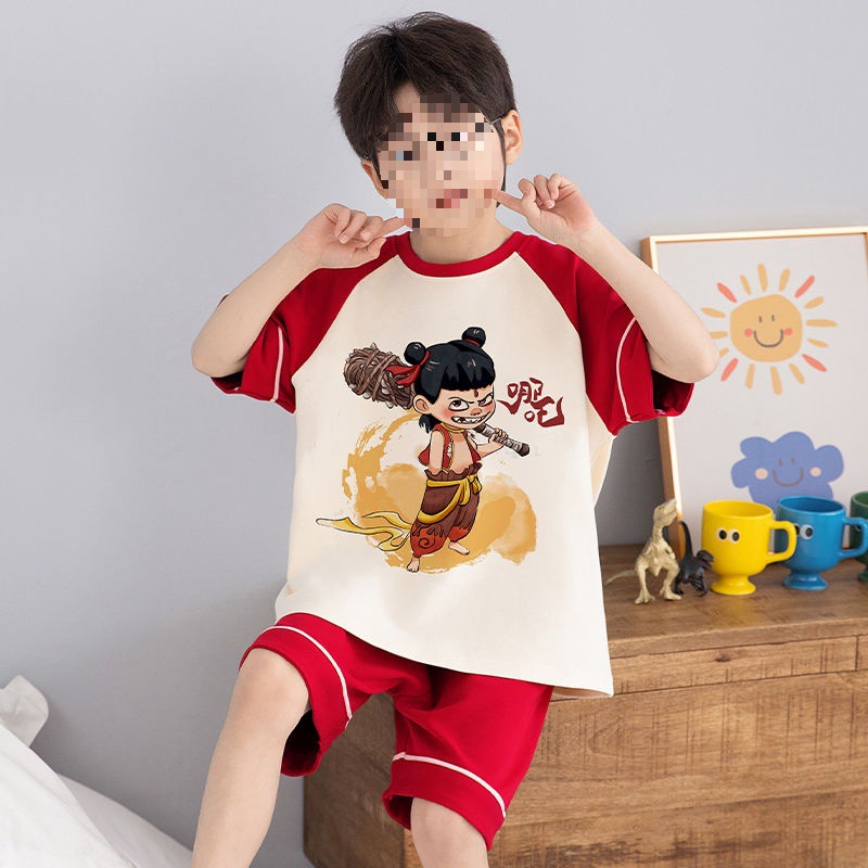 소년 잠옷 어린이 여름 새 시즌 얇은 순면 반팔 양복 어린 소년 세련된 큰 어린이 귀여운 가정 옷스토어 가기