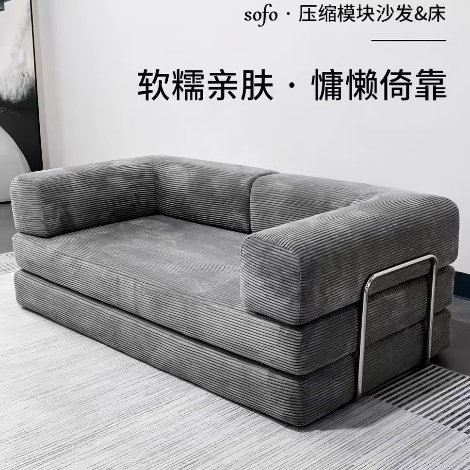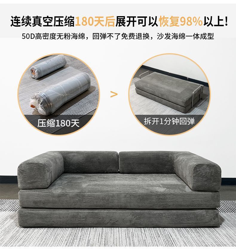 공장 국경 간 압축 소파 진공 롤 포장 미니멀리스트 디자이너 거실 라이트 럭셔리 스타일 패브릭 접이식 소파 베드스토어 가기