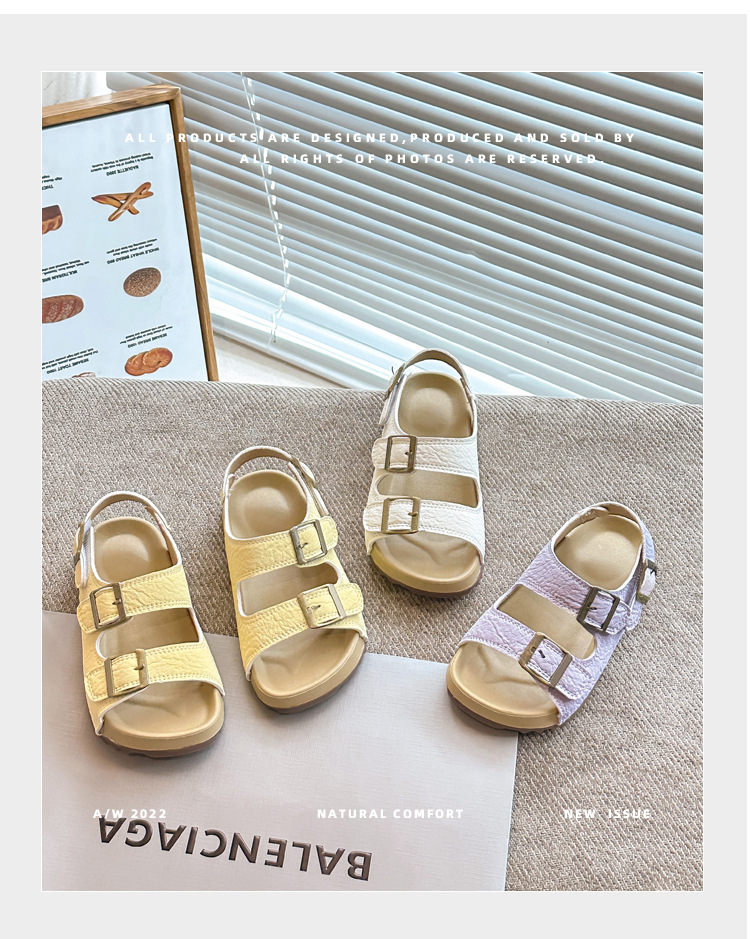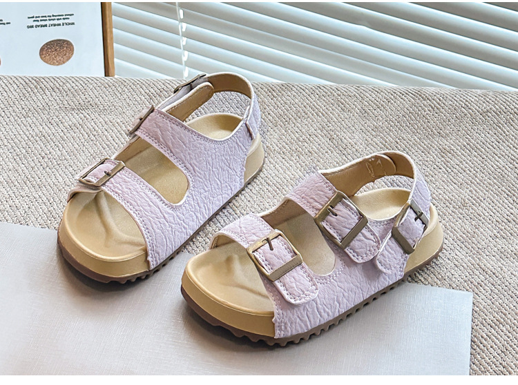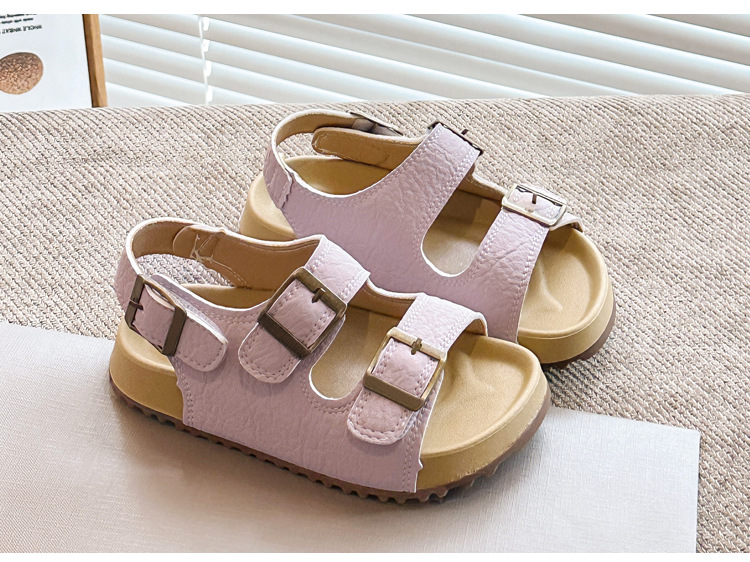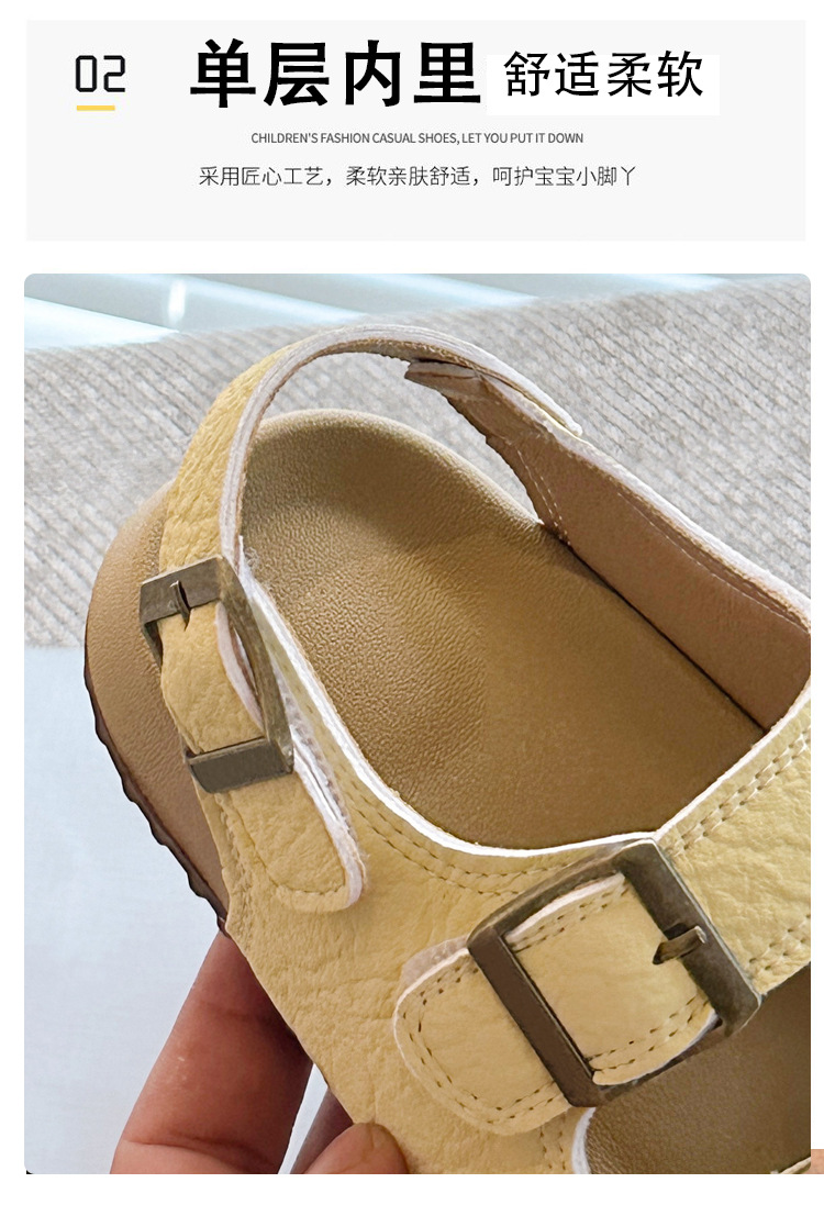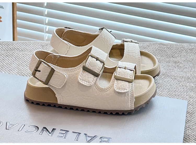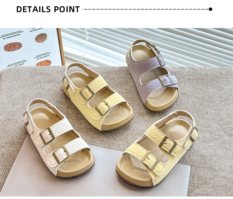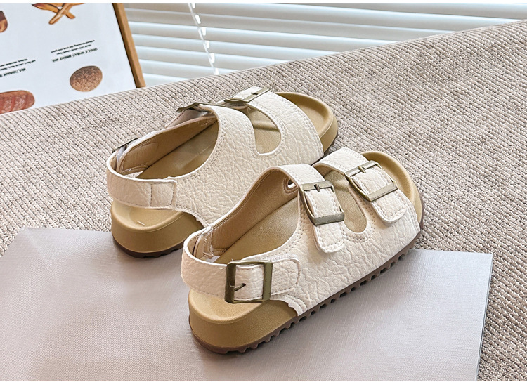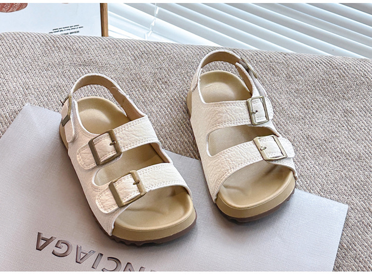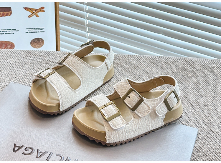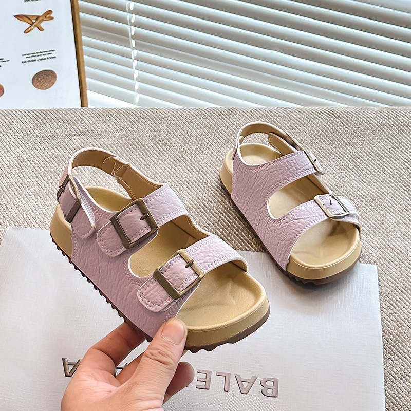 2025 레트로 젖빛 여름 어린이 신발 어린이 코르크 샌들 소녀 Birkenstock 샌들 미끄럼 방지 부드러운 바닥 로마 신발