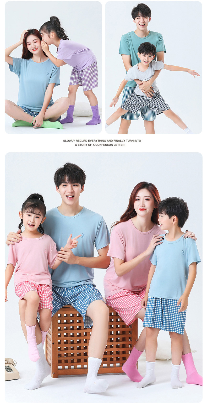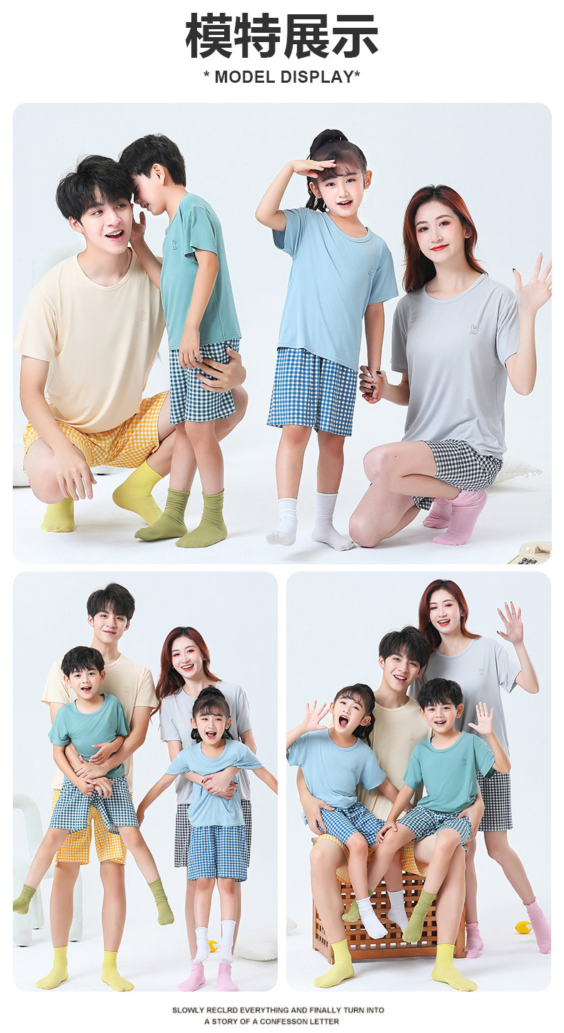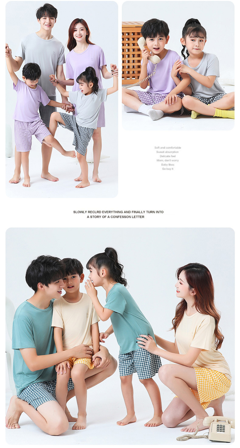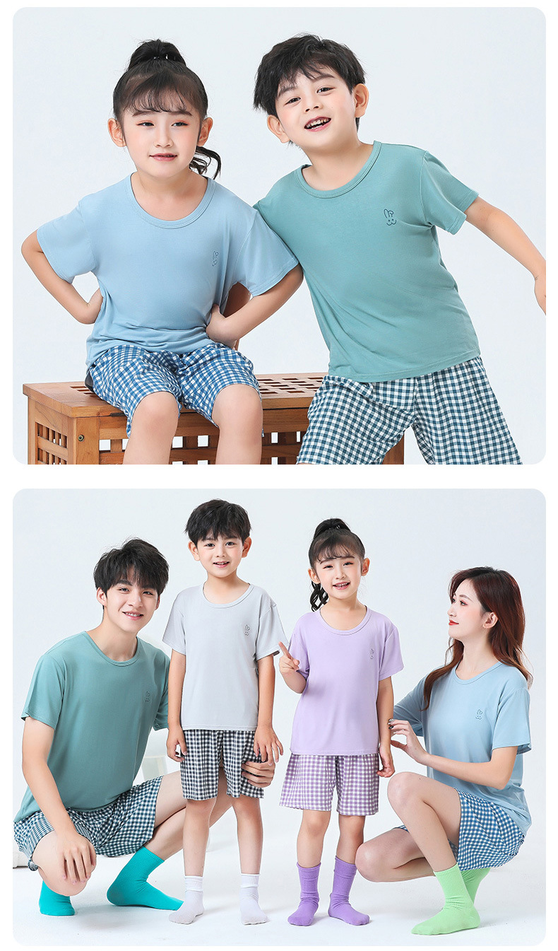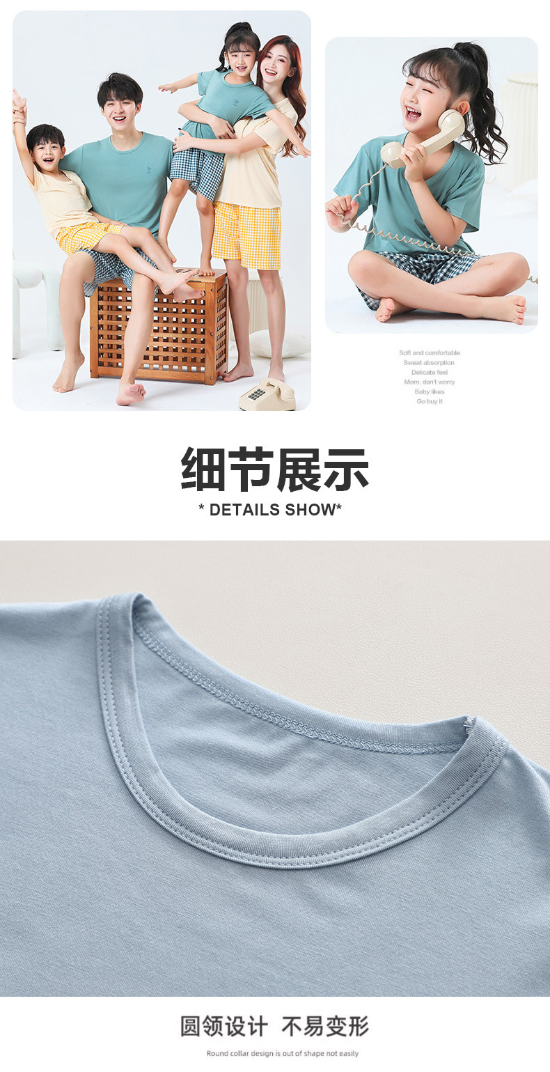아동용 모달 잠옷 세트, 여름용 얇은 반팔 반바지, 가정복, 중대형 아동용 남아 및 여아, 부모-자식 의류스토어 가기