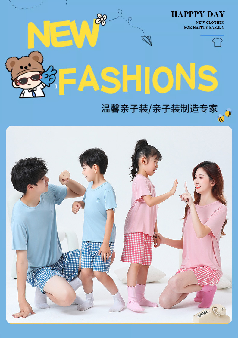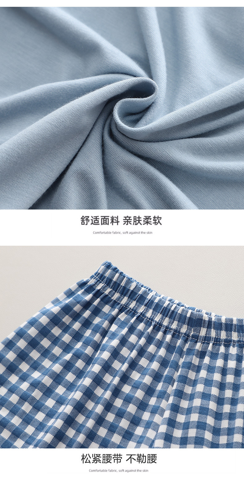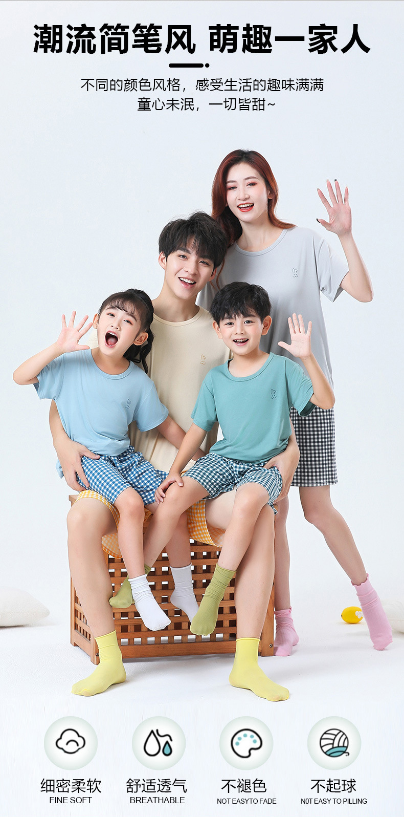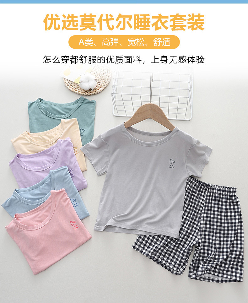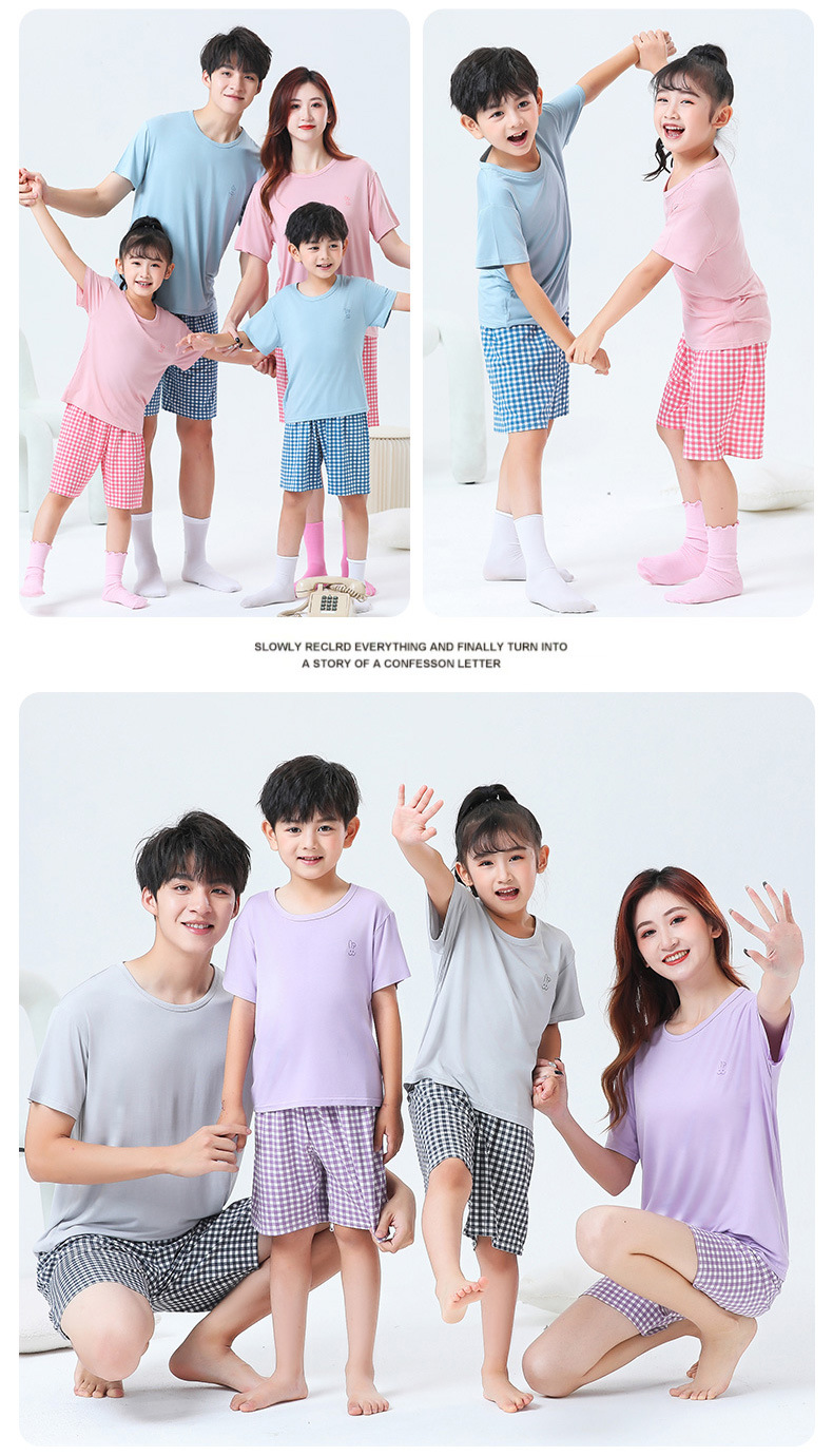 아동용 모달 잠옷 세트, 여름용 얇은 반팔 반바지, 가정복, 중대형 아동용 남아 및 여아, 부모-자식 의류스토어 가기