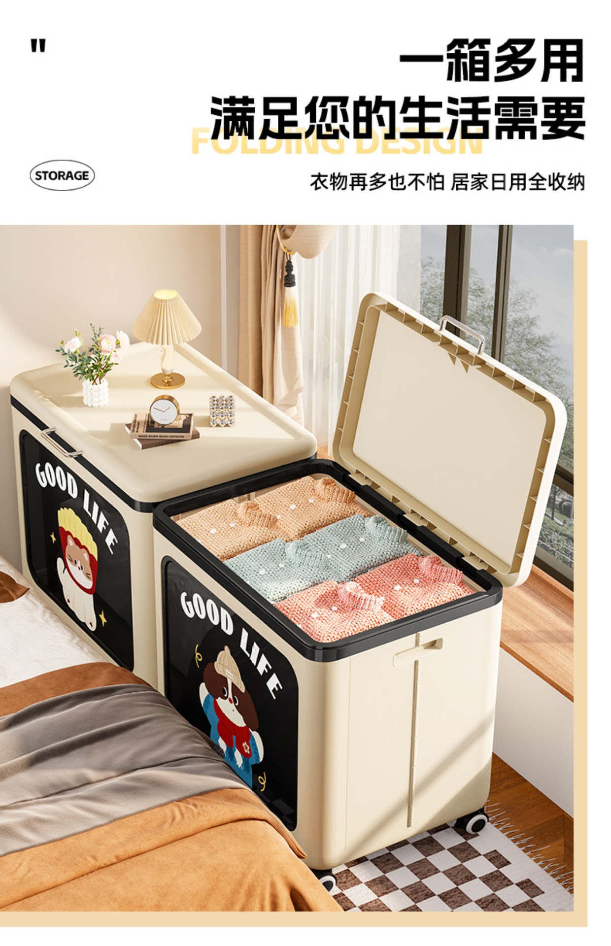 어린이 장난감 보관 상자, 고급스러운 거실 대용량 보관 상자, 플립 커버 접이식 옷 및 이불 보관 상자스토어 가기