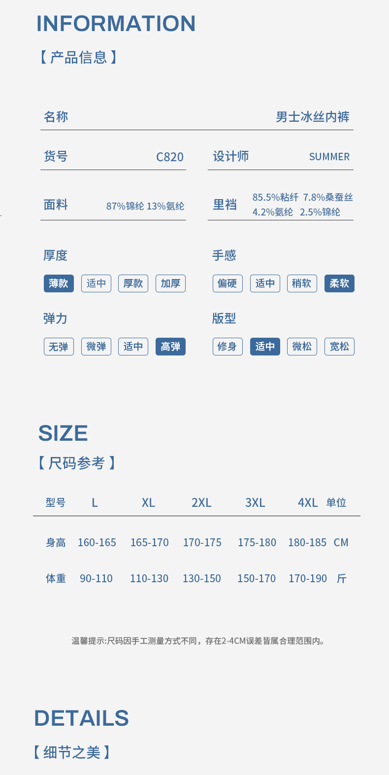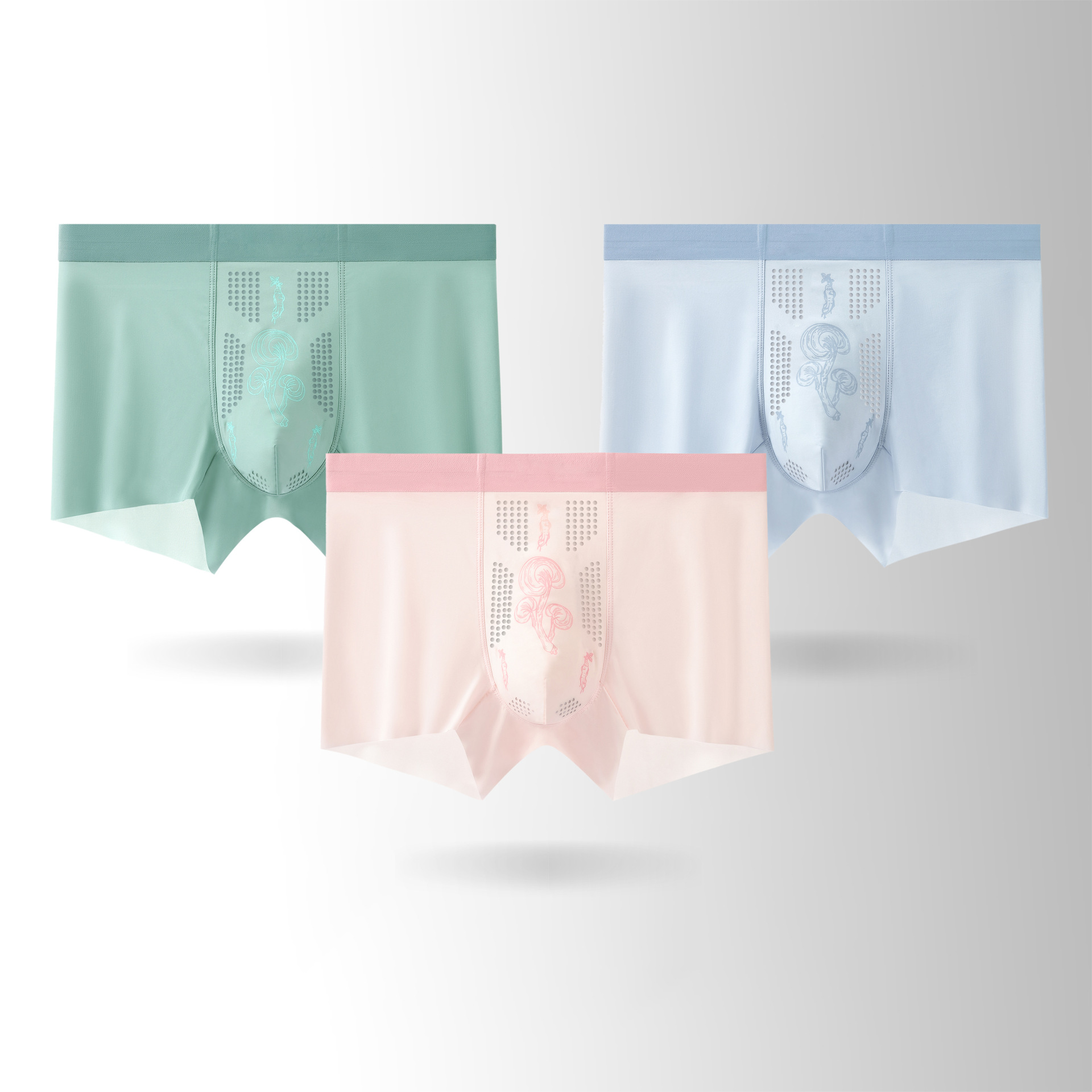 허브 에너자이저, 인삼, 뽕나무 실크, 마노린 마사지 과립, 통기성 메쉬 아이스 실크 남성 속옷스토어 가기