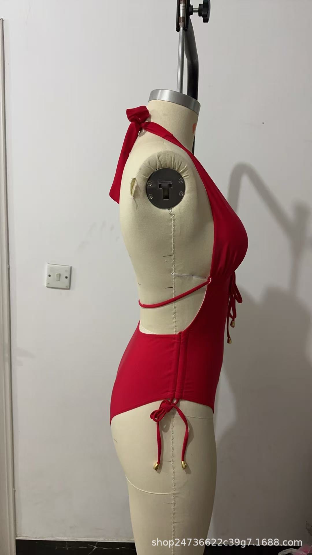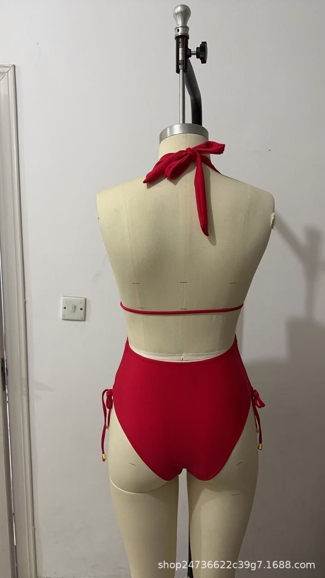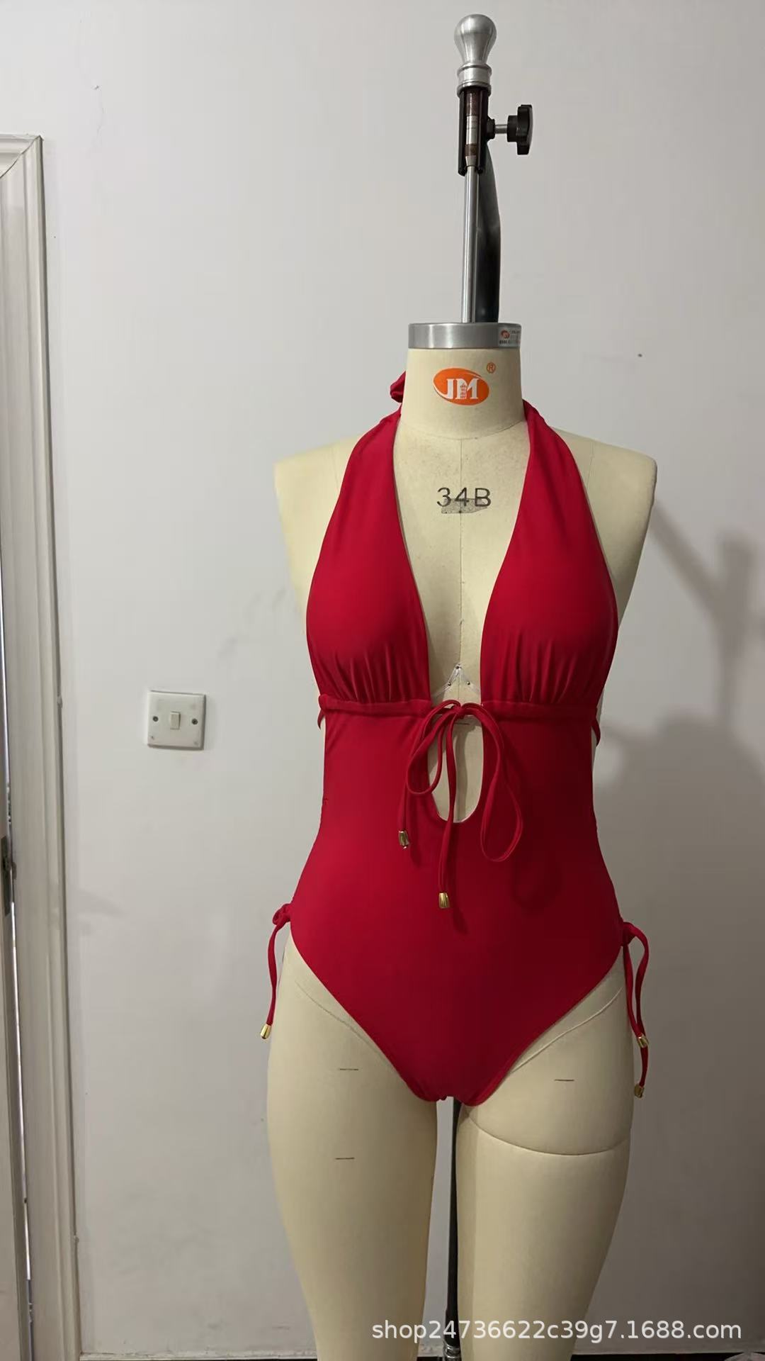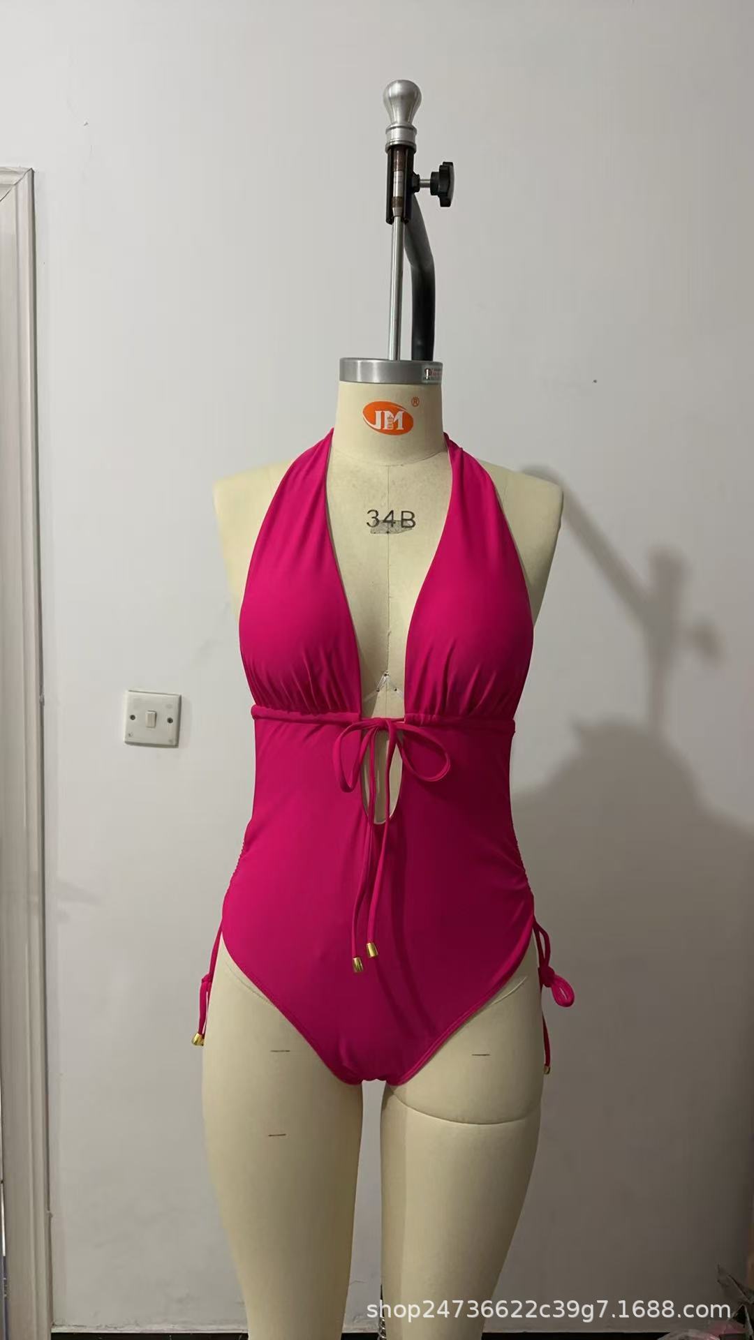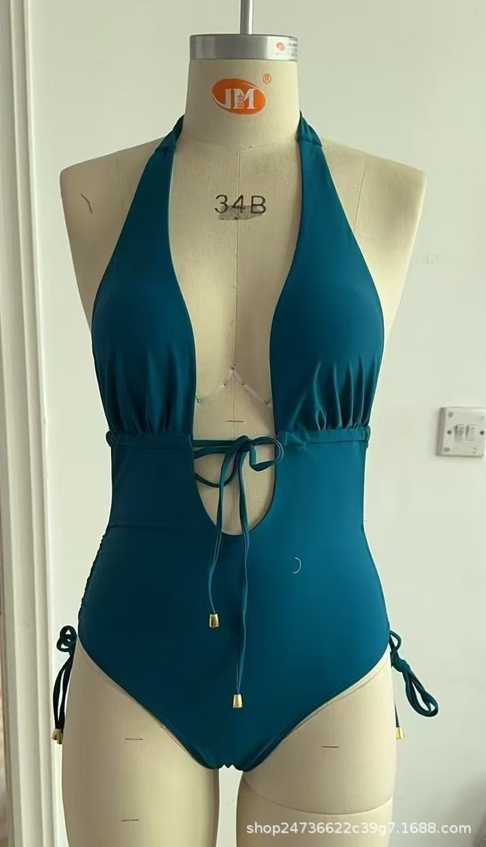 2025 유럽과 미국의 국경 간 대외 무역 트렌드 솔리드 컬러 홀터넥 서스펜더 레이스 업 섹시한 비키니 원피스 온천 수영복스토어 가기