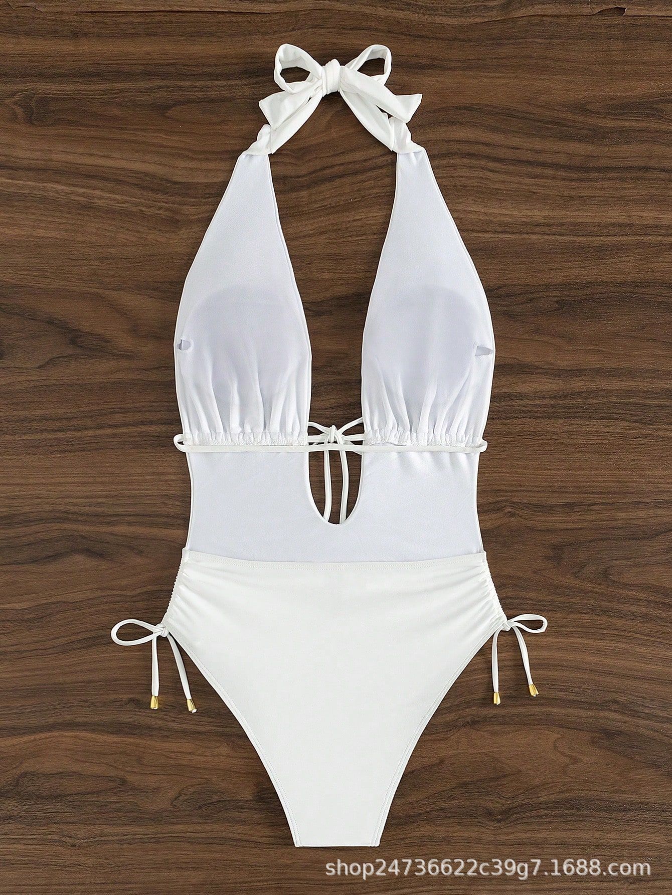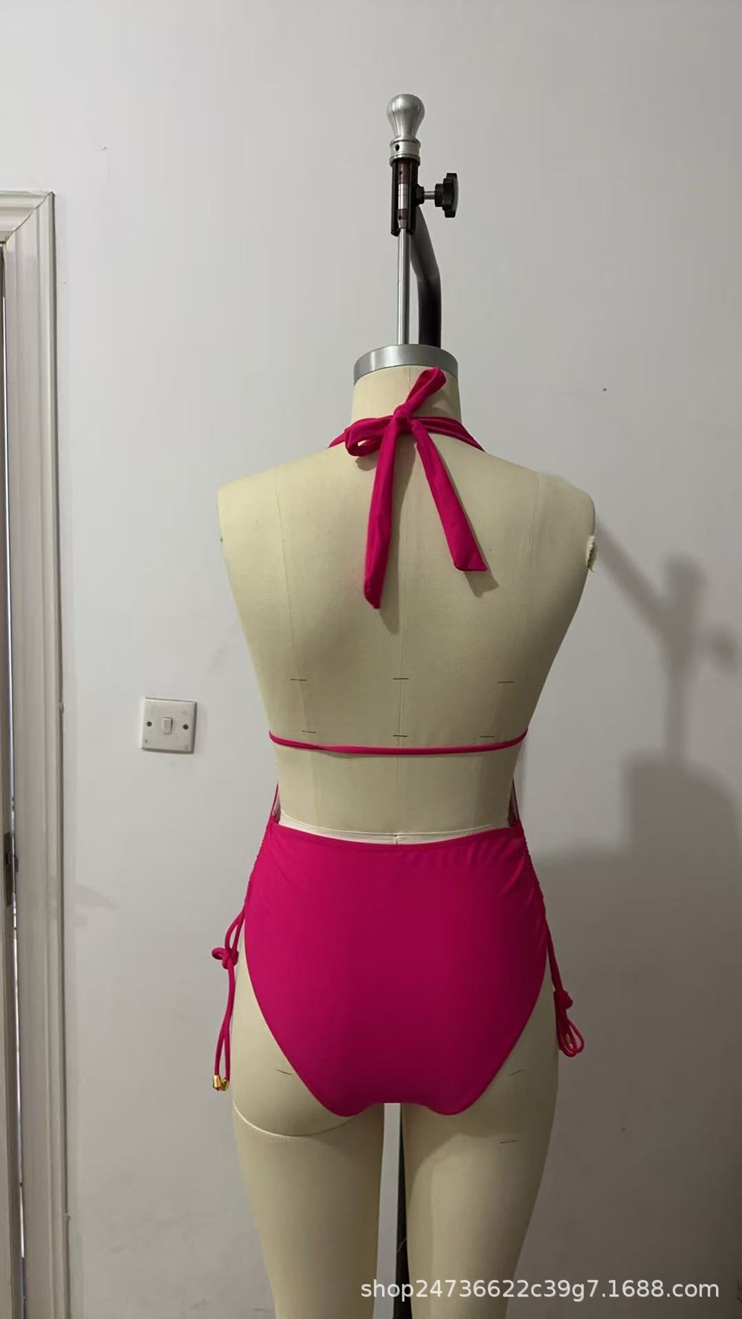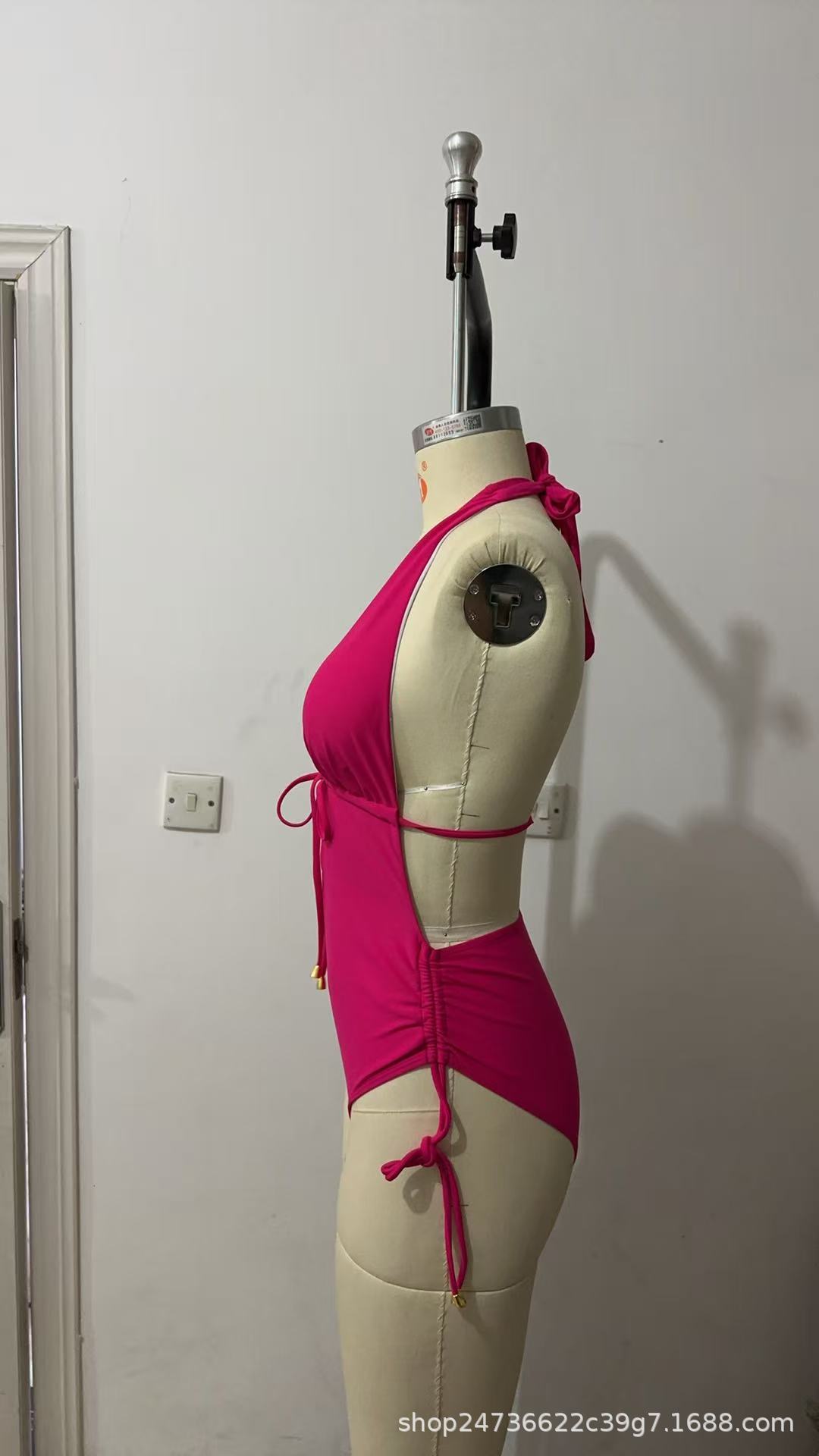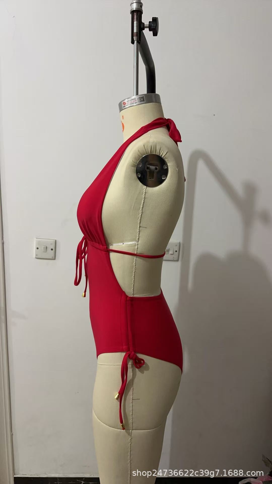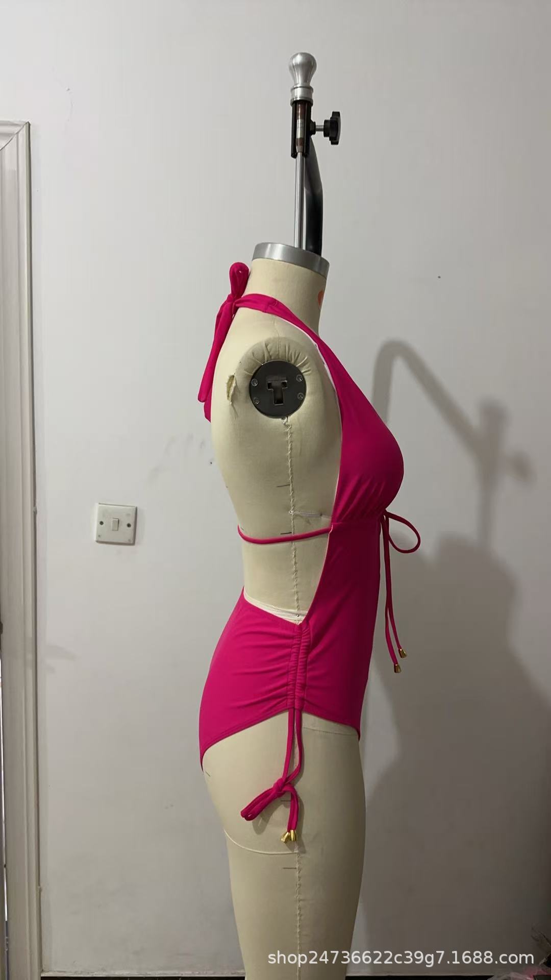 2025 유럽과 미국의 국경 간 대외 무역 트렌드 솔리드 컬러 홀터넥 서스펜더 레이스 업 섹시한 비키니 원피스 온천 수영복스토어 가기