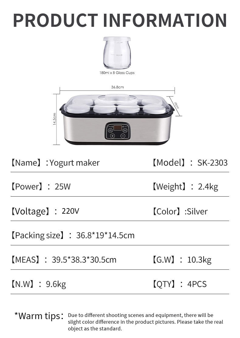 맞춤형 로고 요구르트 제조기, 아이스크림 발효기, 밀크쉐이크, 잼, 푸딩, 컵형 아침식사 제조기, 스테인리스 스틸, 항온 기능