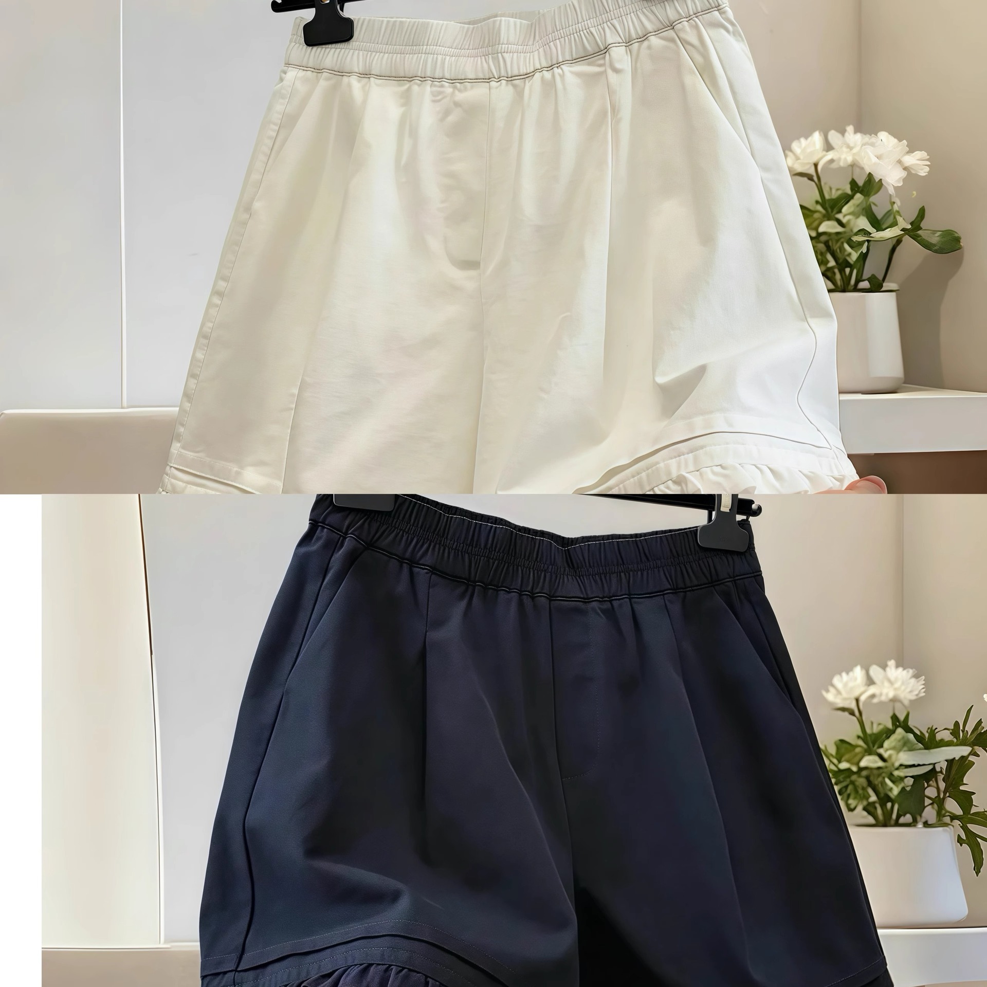 카운터에서 철수~라벨컷 카운터 하이웨이스트 슬리밍 캐주얼 반바지 여성 패션 만능 와이드 스트레이트 팬츠