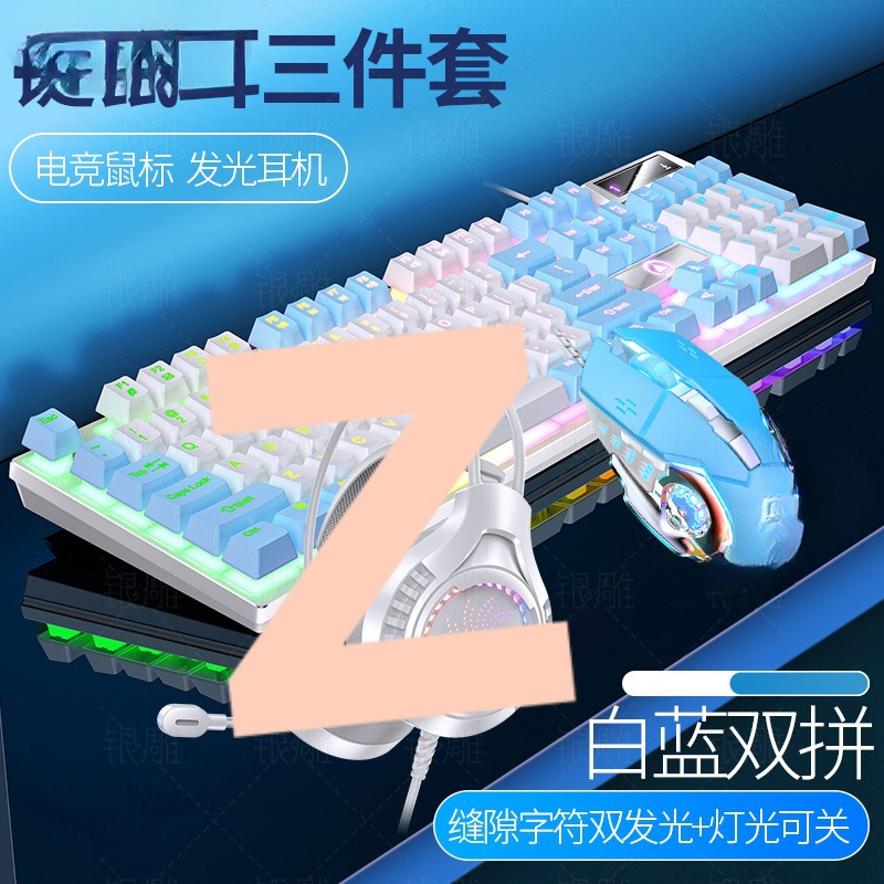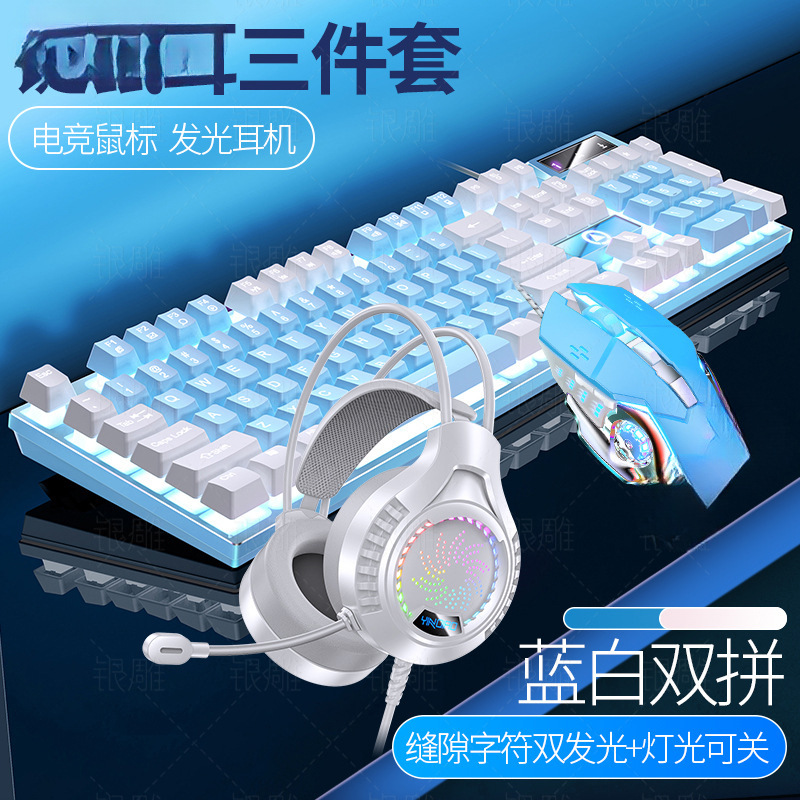 • K500 파란색과 흰색 조명 + G15 마우스 + Q7 헤드폰 + 마우스 패드