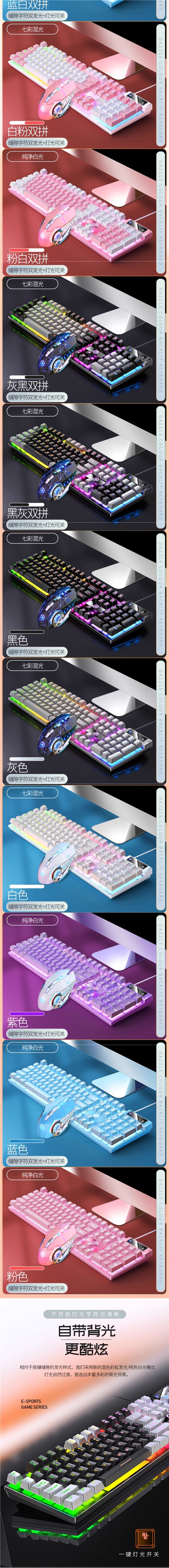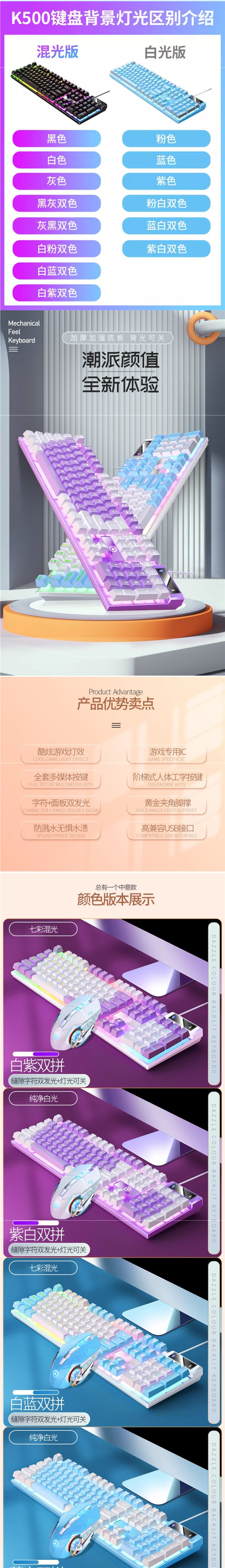 500 기계적 느낌 키보드 유선 컴퓨터 데스크탑 라이트 사운드 오피스 e-스포츠 게임 마우스 세트 도매스토어 가기