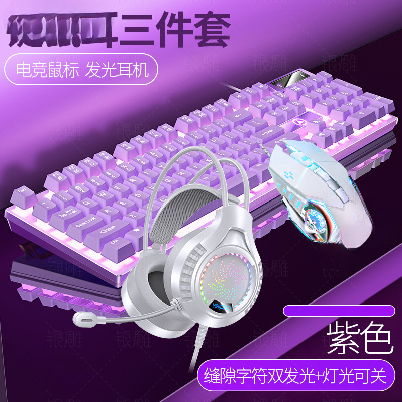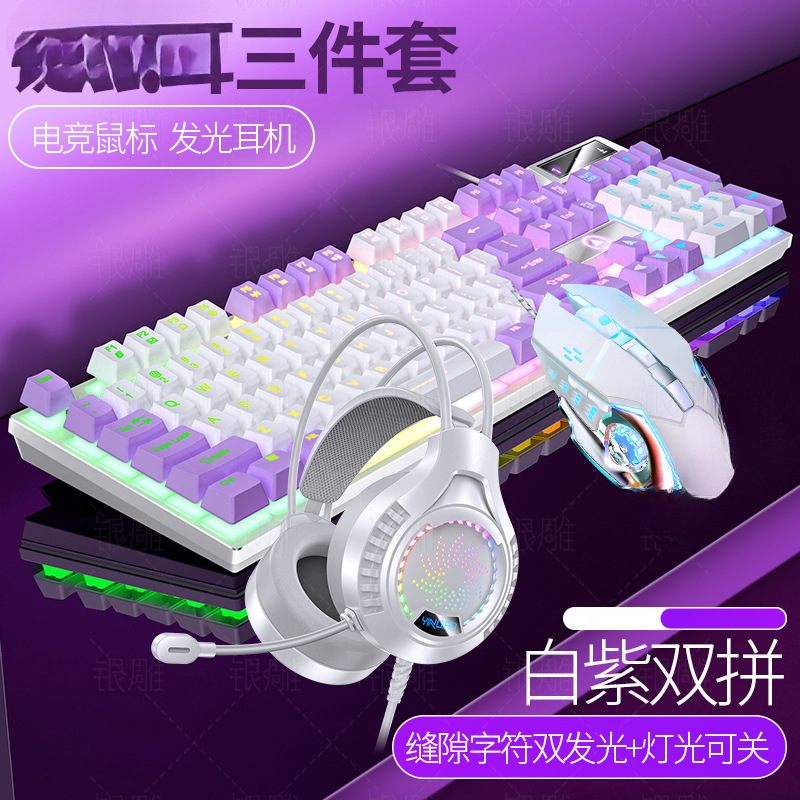 • K500 흰색과 보라색 혼합 조명 + G15 마우스 + Q7 헤드폰 + 마우스 패드