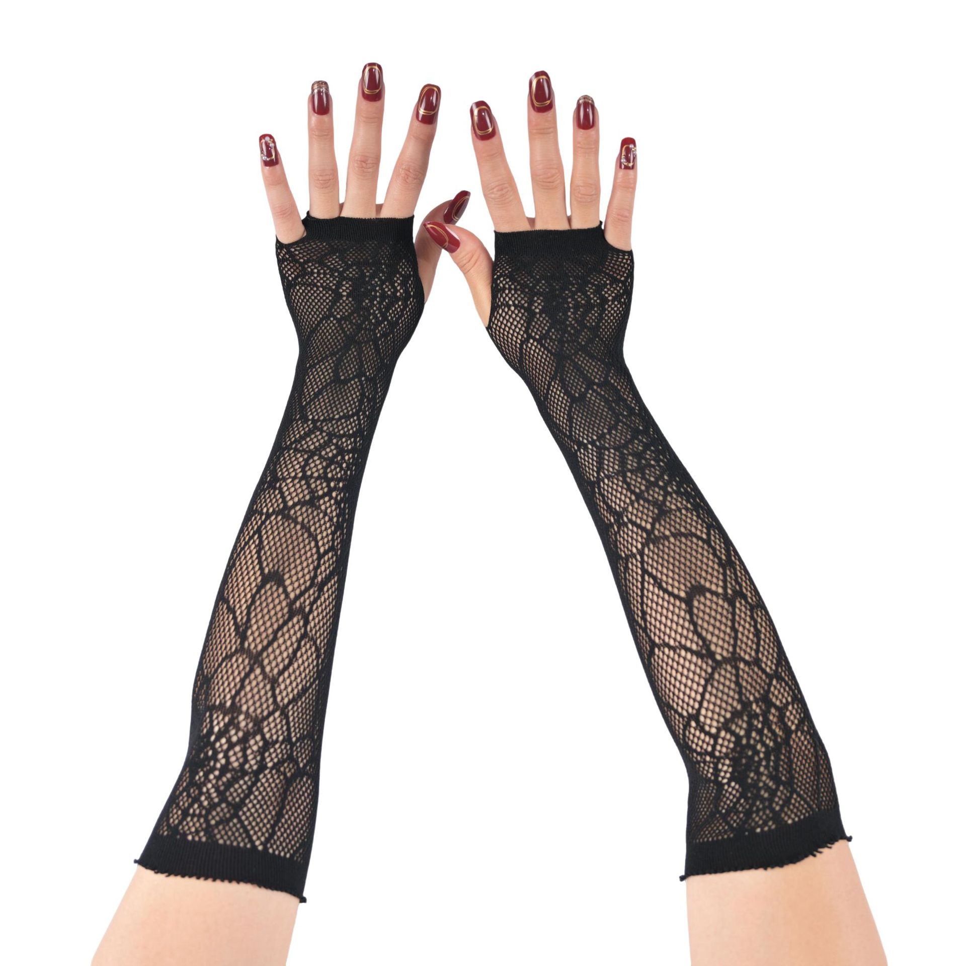 거미줄 장갑 할로윈 장식 코스프레 쇼 장갑 중간 길이 메쉬 반 손가락 통기성 메쉬 장갑스토어 가기
