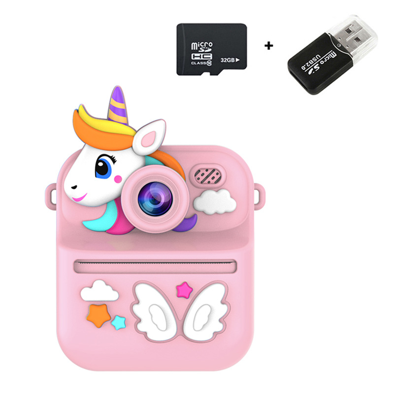 • S1 프린트 카메라 - 핑크 유니콘 + 32GB 메모리 카드 + USB 카드 리더기