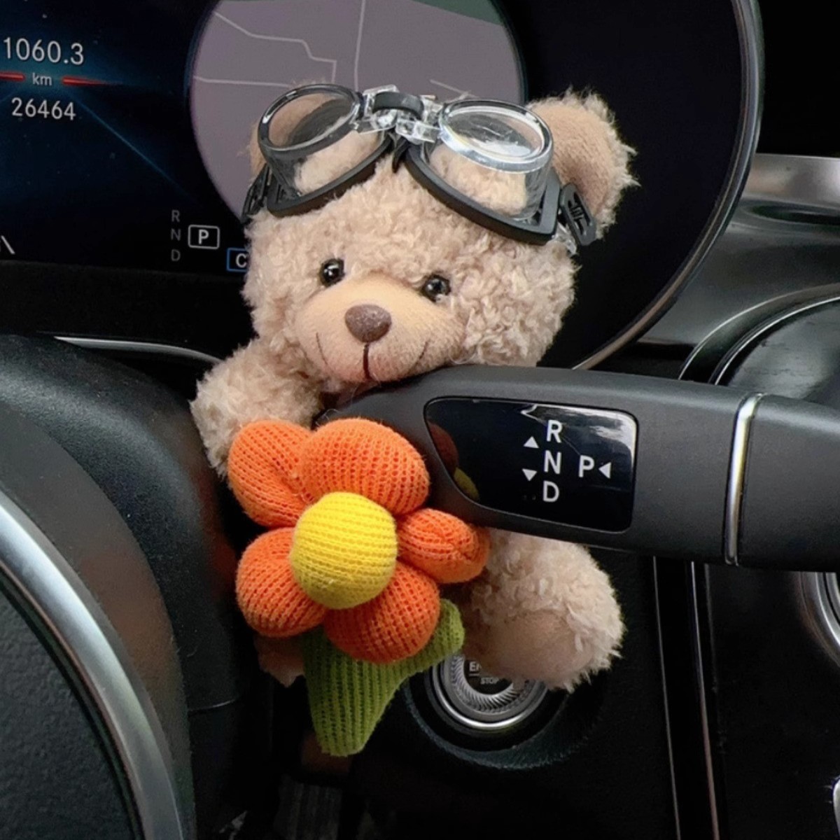 • 꽃 안경을 쓴 작은 갈색 곰 - 자동차 기어 레버 장식