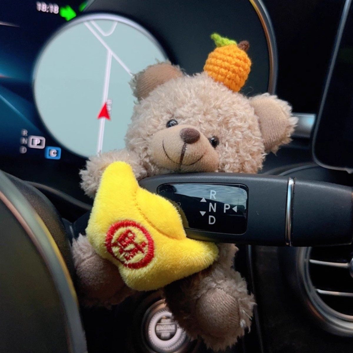 • Yuanbao 감 갈색 곰 자동차 기어 레버 장식