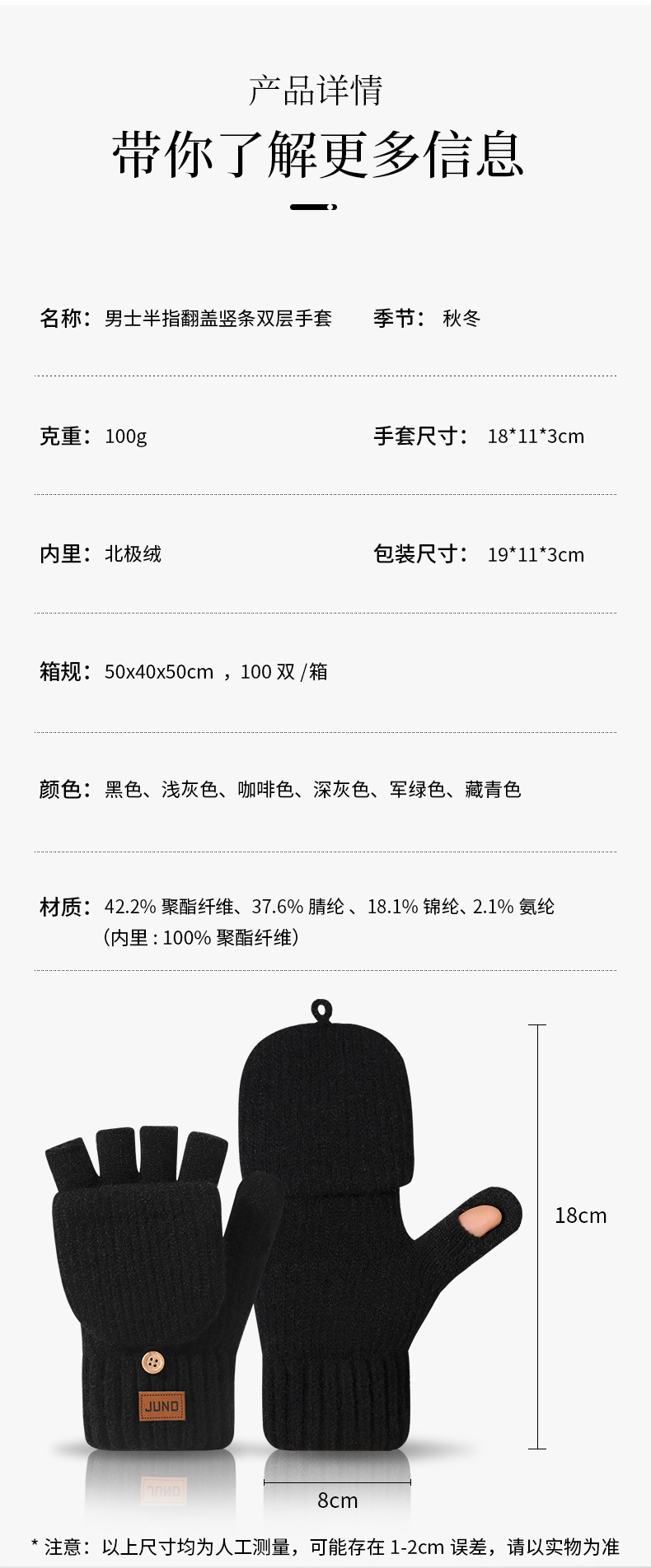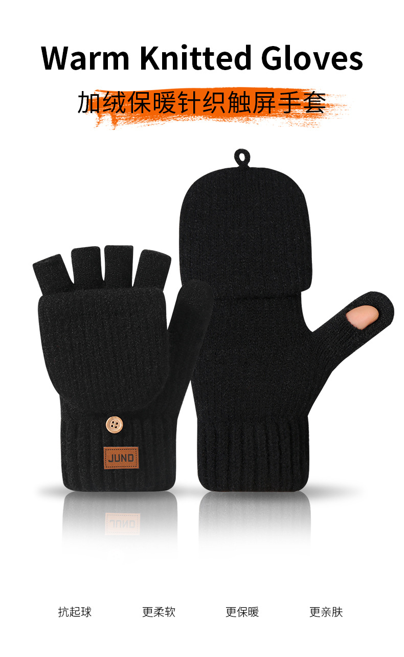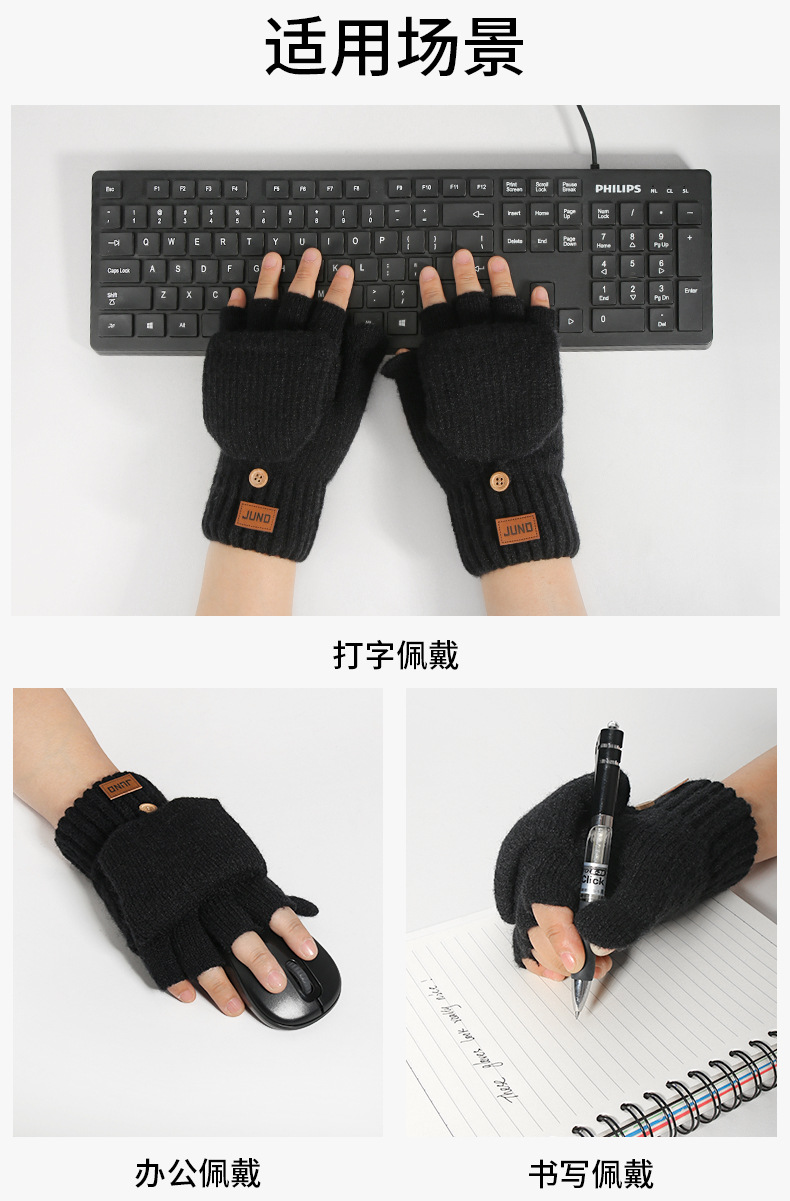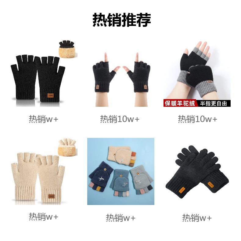 두꺼운 반손가락 장갑, 가을 겨울 벨벳 니트 방한 및 따뜻한 반 글쓰기 울 손가락 없는 장갑 크로스보더스토어 가기