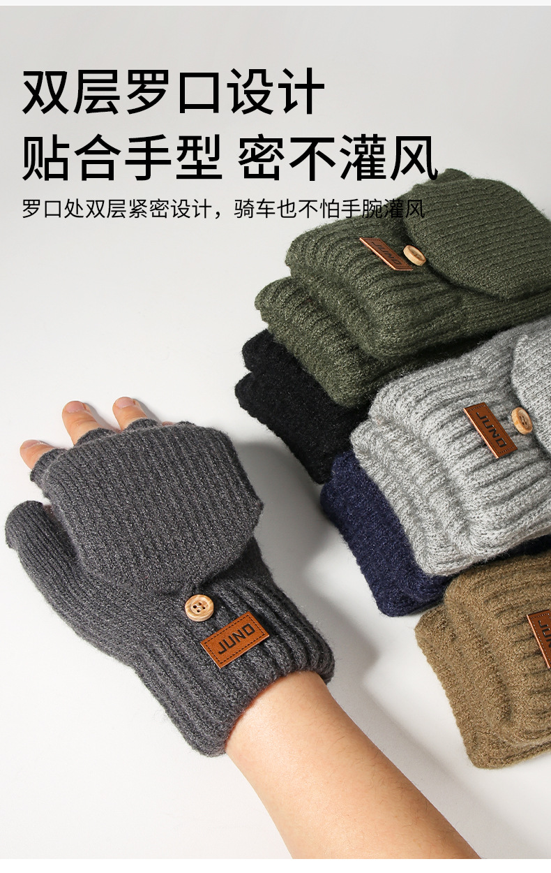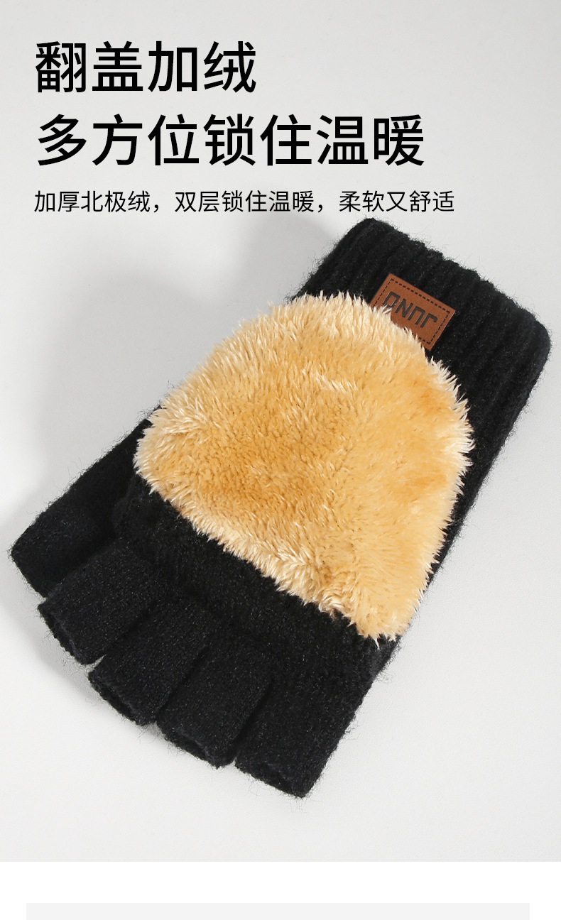 두꺼운 반손가락 장갑, 가을 겨울 벨벳 니트 방한 및 따뜻한 반 글쓰기 울 손가락 없는 장갑 크로스보더