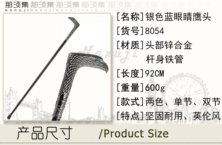 이탈리아 영국 신사 지팡이 금속 손잡이 독수리 머리 왕의 권좌 문명 지팡이 노인 미끄럼 방지 패션쇼 소품