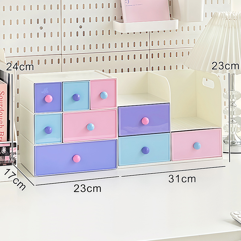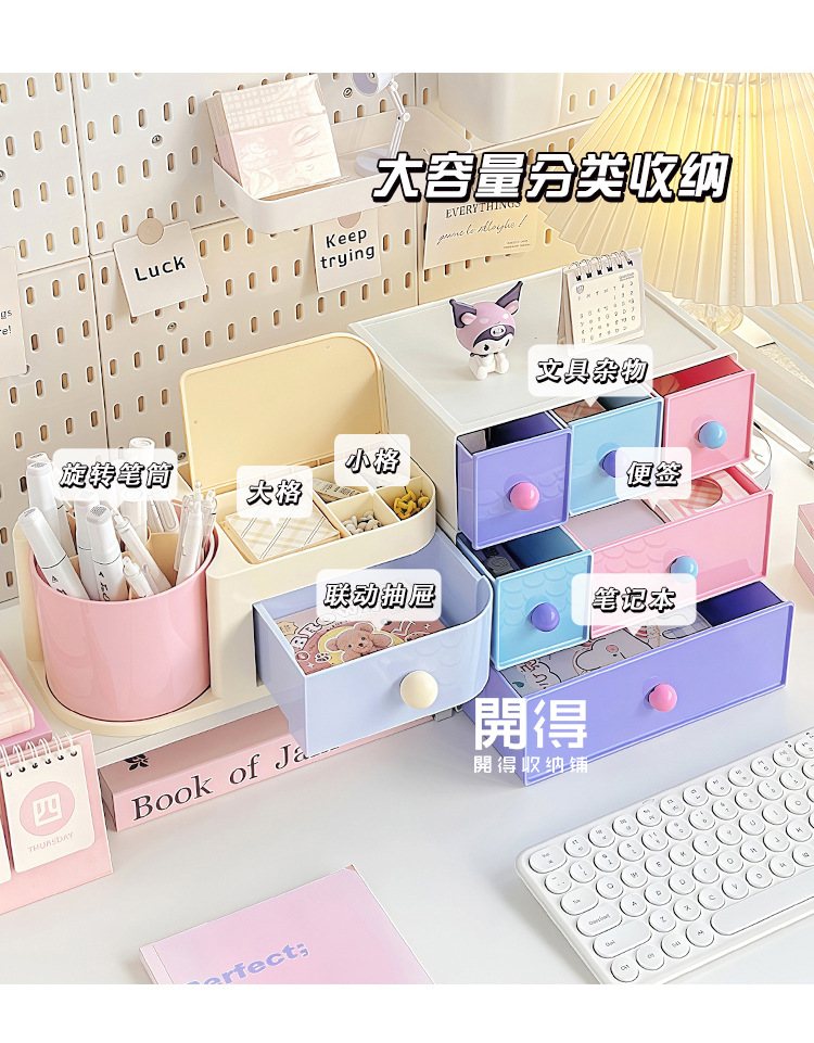 수납박스 데스크탑 서랍형 도파민 학생 문구 화장품 워크스테이션 데스크 정리함 현관 수납선반스토어 가기