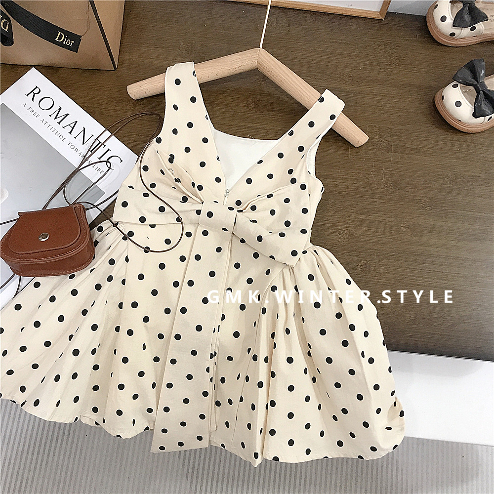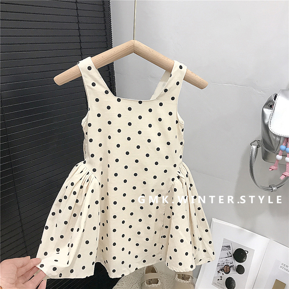 여자 민소매 폴카 도트 드레스 여름 새로운 어린이 조끼 드레스 아기 활 공주 면화 드레스 대외 무역스토어 가기