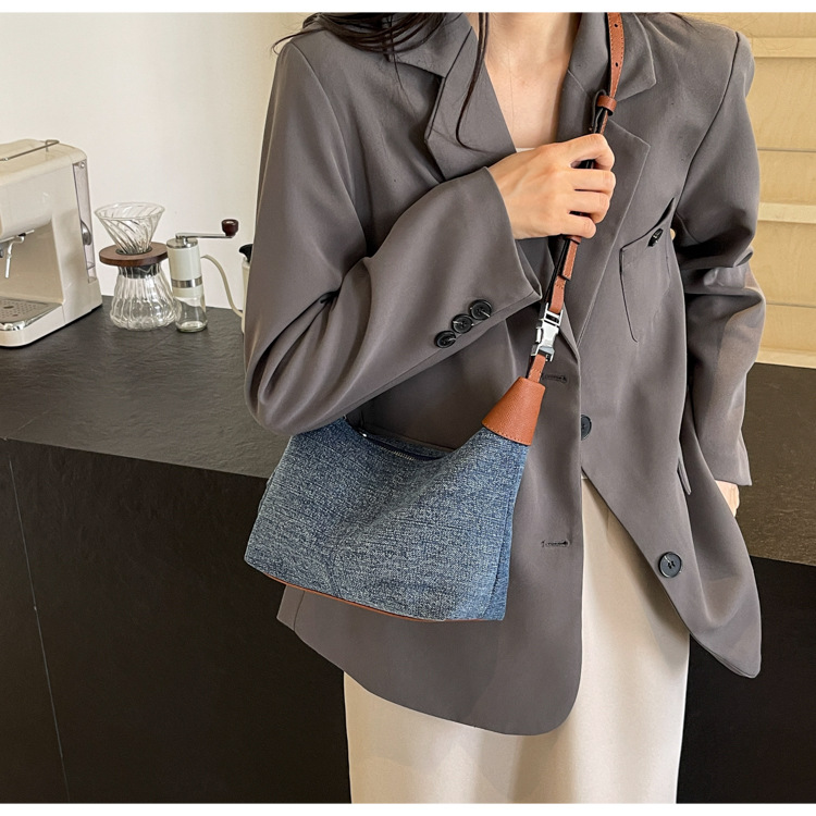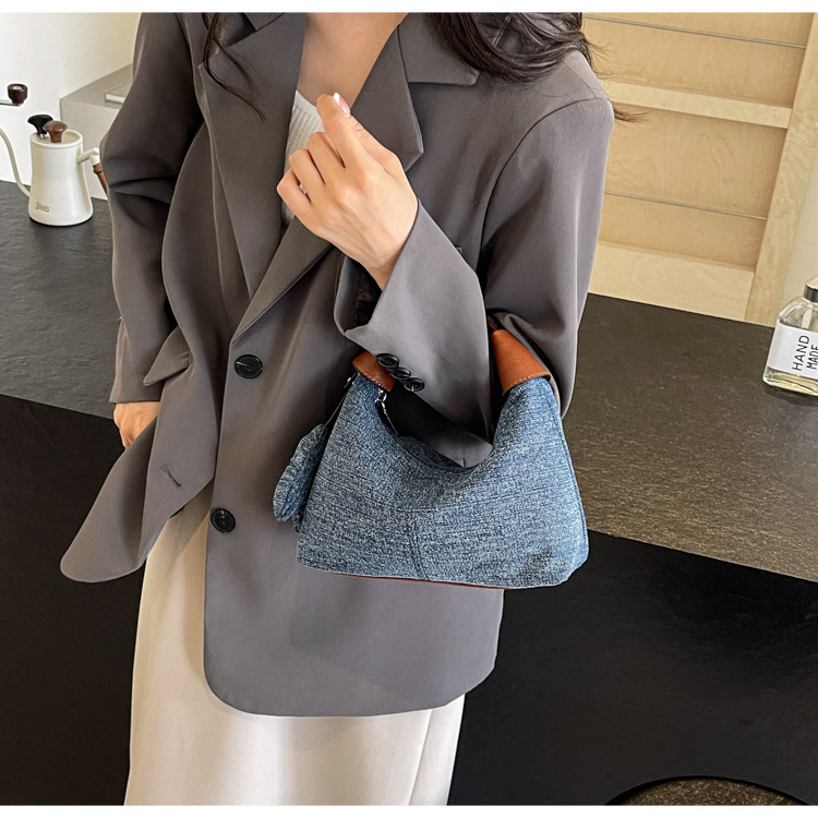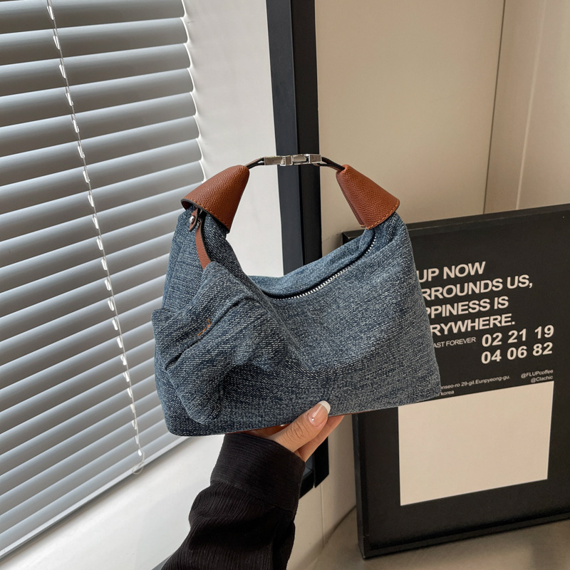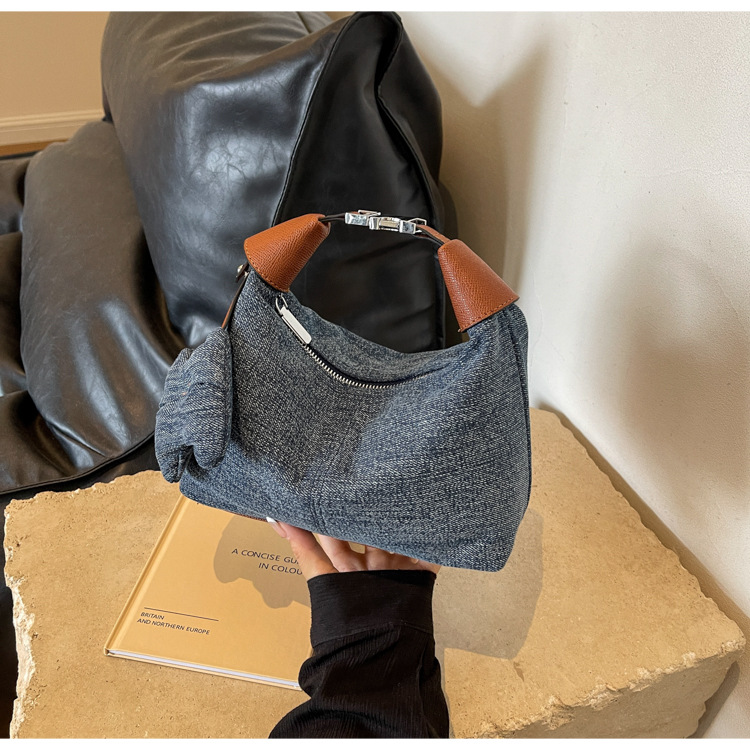 여성을위한 슈퍼 핫 틈새 데님 핸드백 2025 새로운 봄, 여름 다목적 크로스 바디 백 세련된 통근 소형 토트 백스토어 가기
