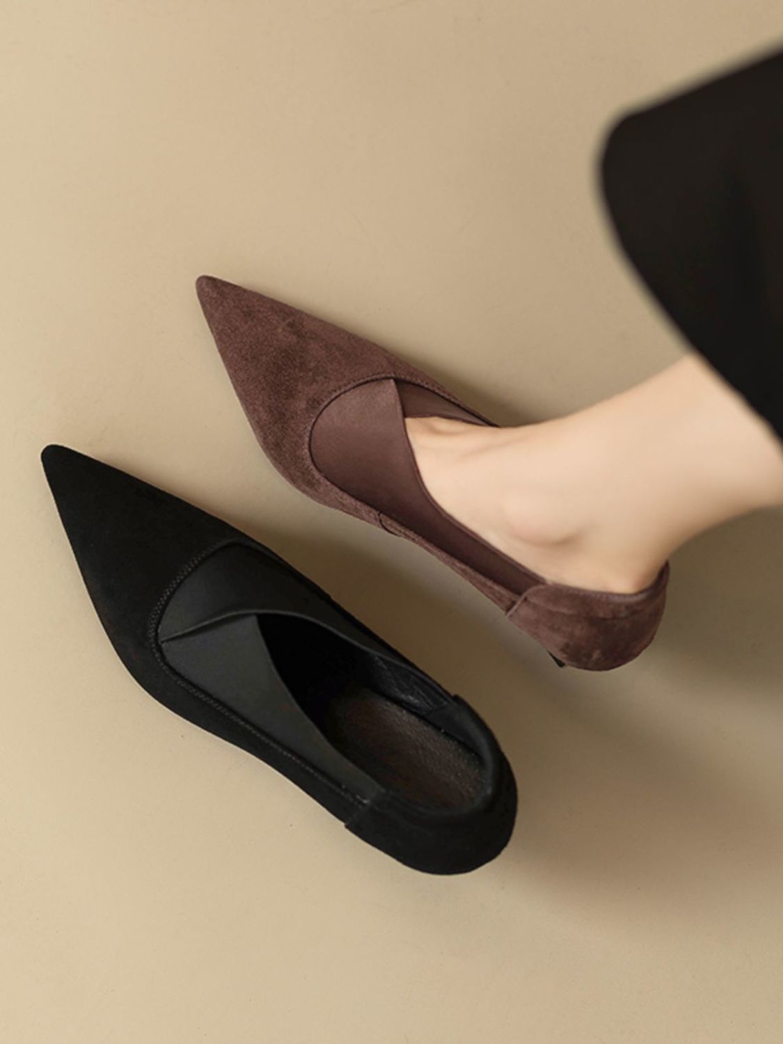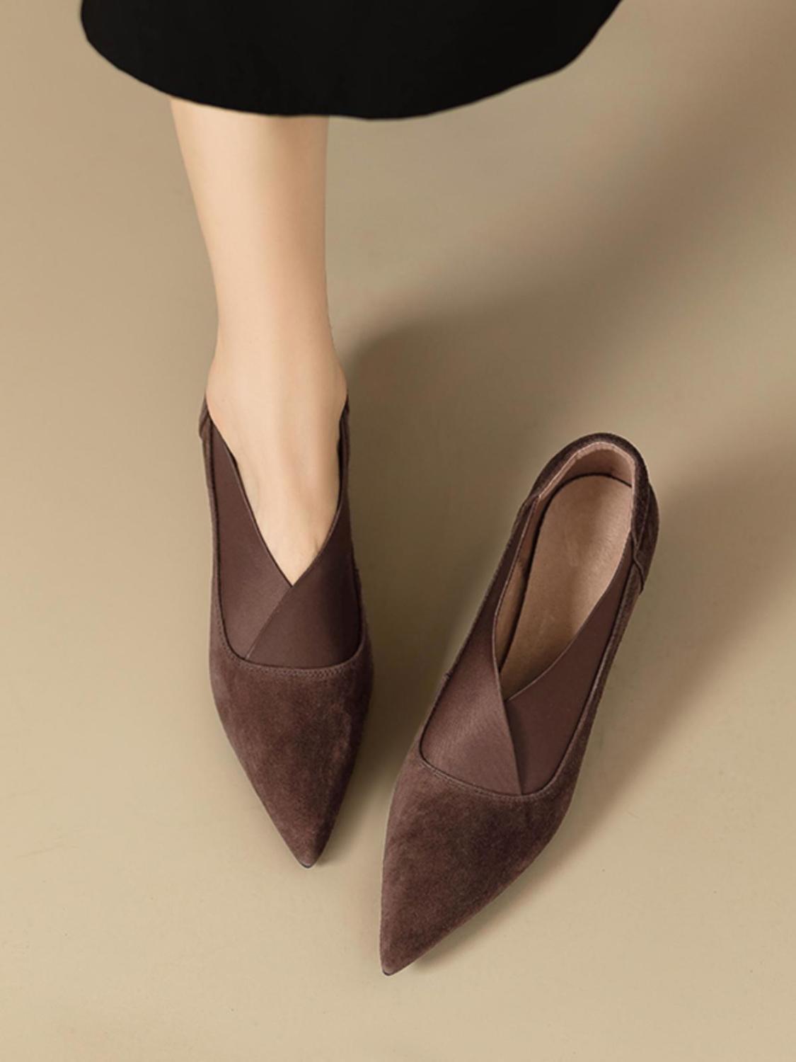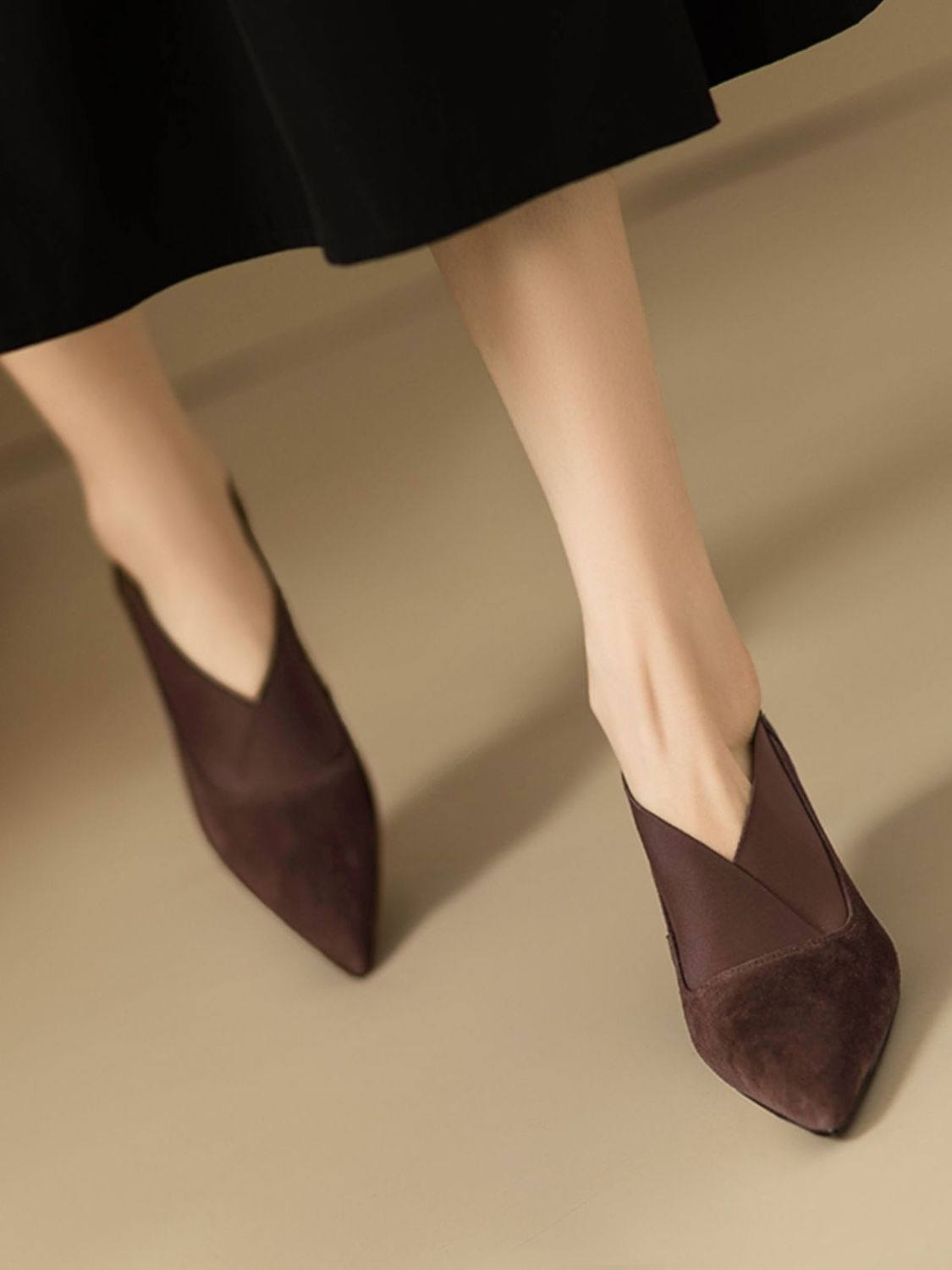 2025 프렌치 포인티드 토 여성용 다용도 슈즈, 봄, 가을 새로운 스타일, 통근용 누드 부츠, V 입 얇은 굽, 천연 가죽 하이힐