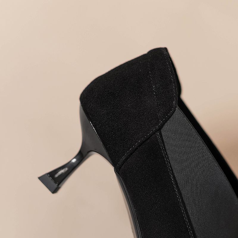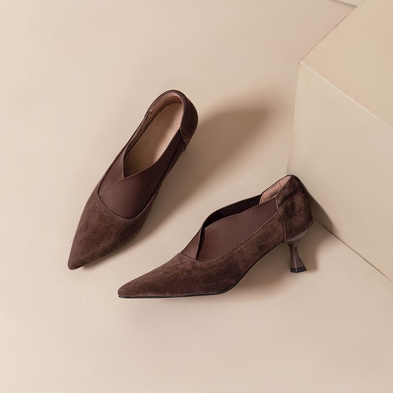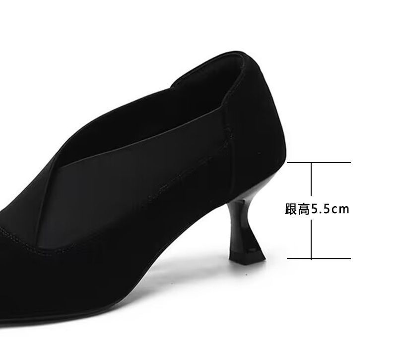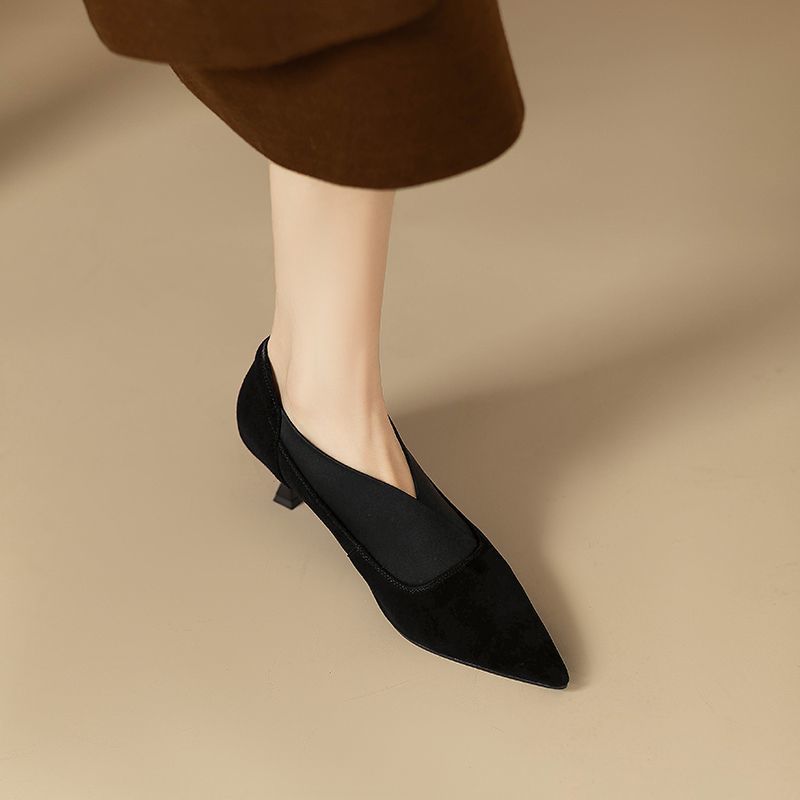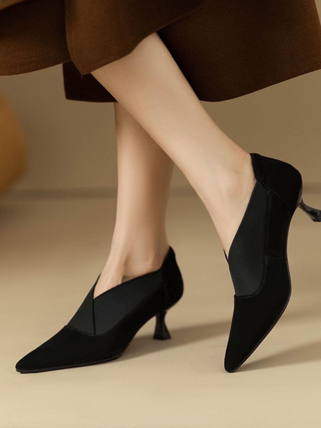 2025 프렌치 포인티드 토 여성용 다용도 슈즈, 봄, 가을 새로운 스타일, 통근용 누드 부츠, V 입 얇은 굽, 천연 가죽 하이힐스토어 가기
