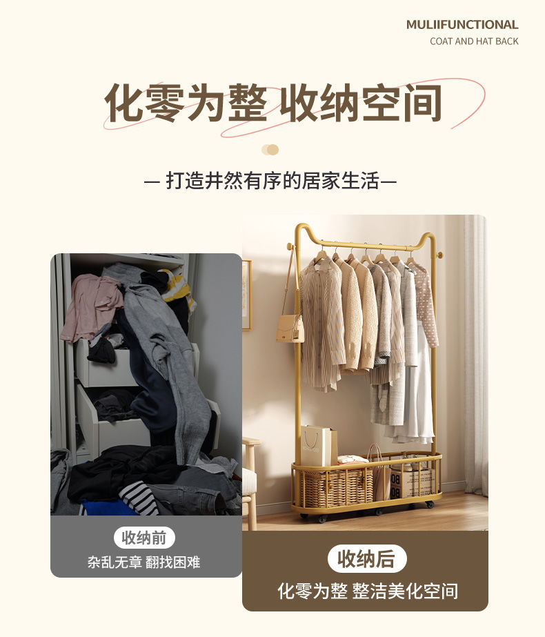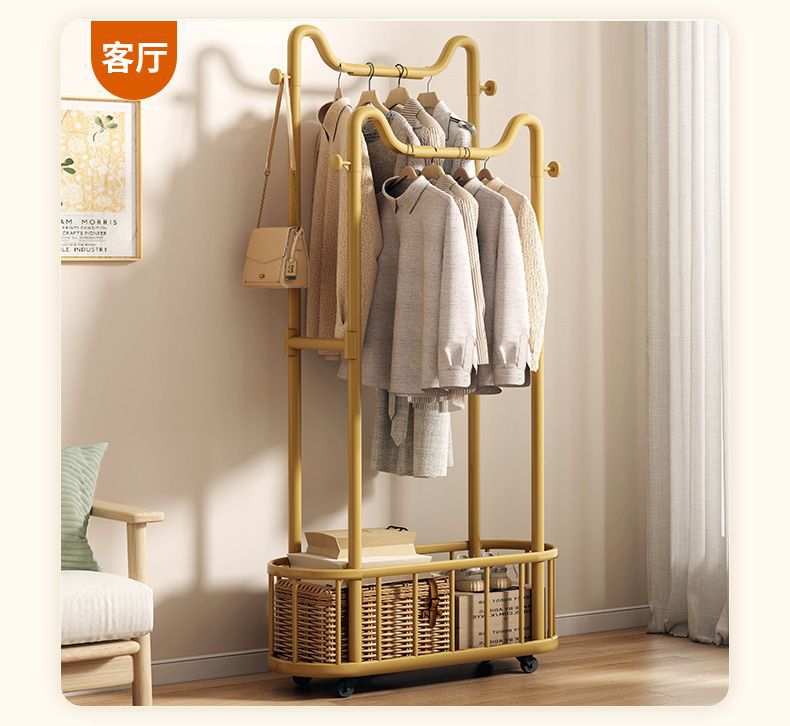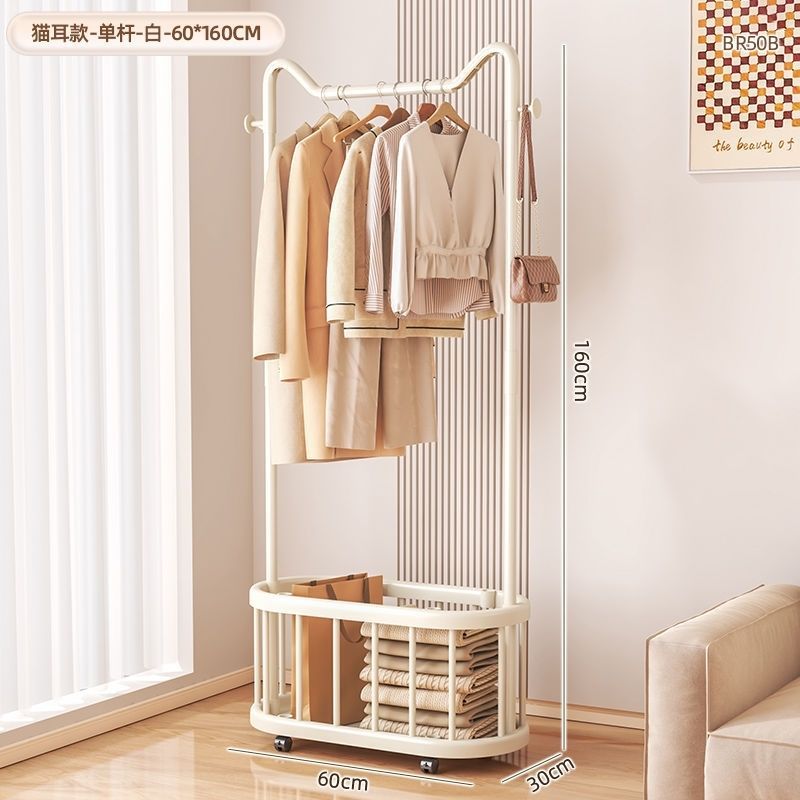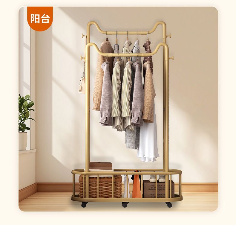 옷걸이 바닥 스탠딩 수직 옷걸이 이동식 바퀴 달린 가정용 수납 옷걸이 거실 인터넷 연예인 가벼운 간단한 코트 랙