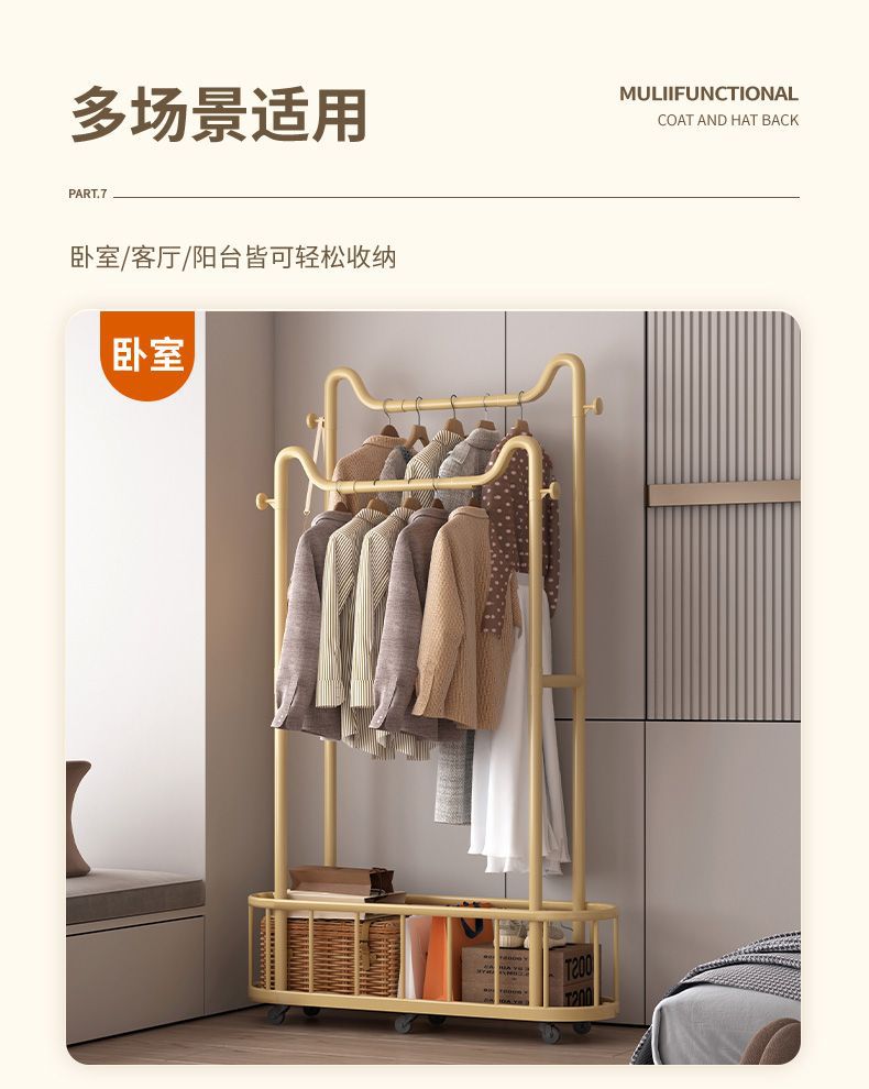 옷걸이 바닥 스탠딩 수직 옷걸이 이동식 바퀴 달린 가정용 수납 옷걸이 거실 인터넷 연예인 가벼운 간단한 코트 랙스토어 가기