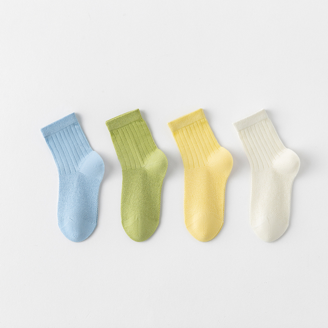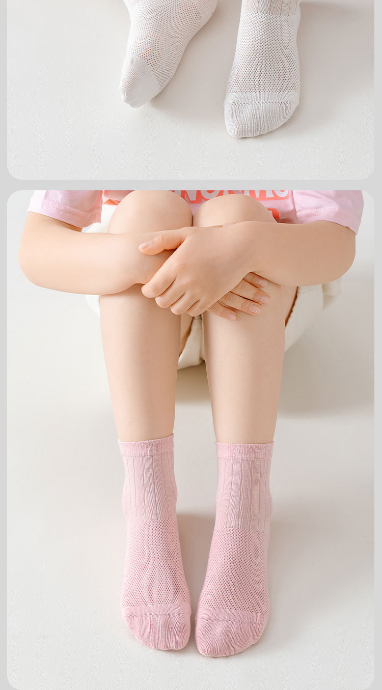 어린이 양말 여름 가볍고 뼈없는 단색 메쉬면 양말 소년과 소녀를위한 안티 필링 중간 튜브 스포츠 양말스토어 가기