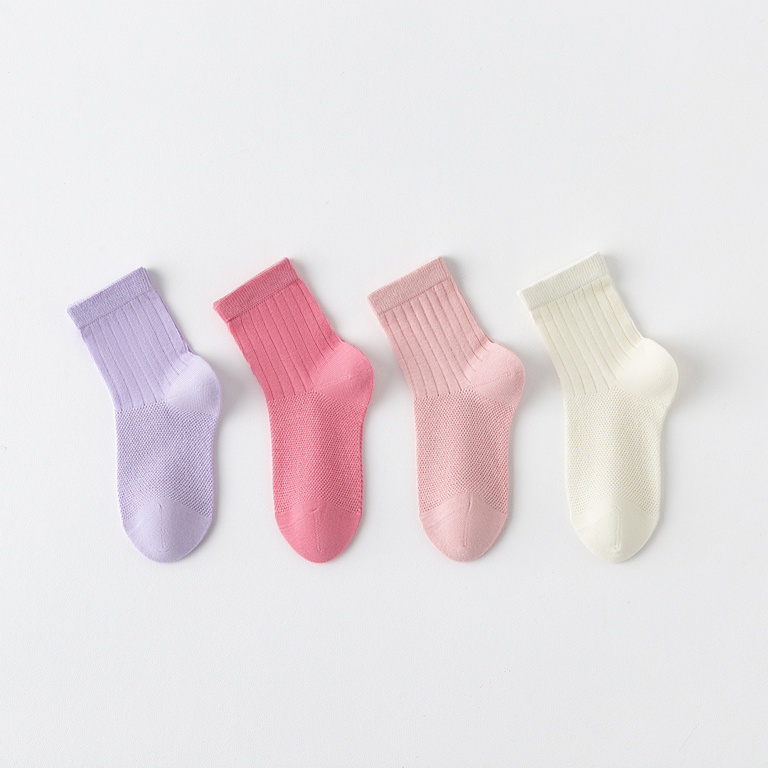 어린이 양말 여름 가볍고 뼈없는 단색 메쉬면 양말 소년과 소녀를위한 안티 필링 중간 튜브 스포츠 양말