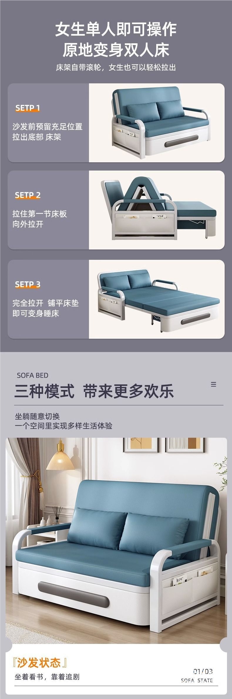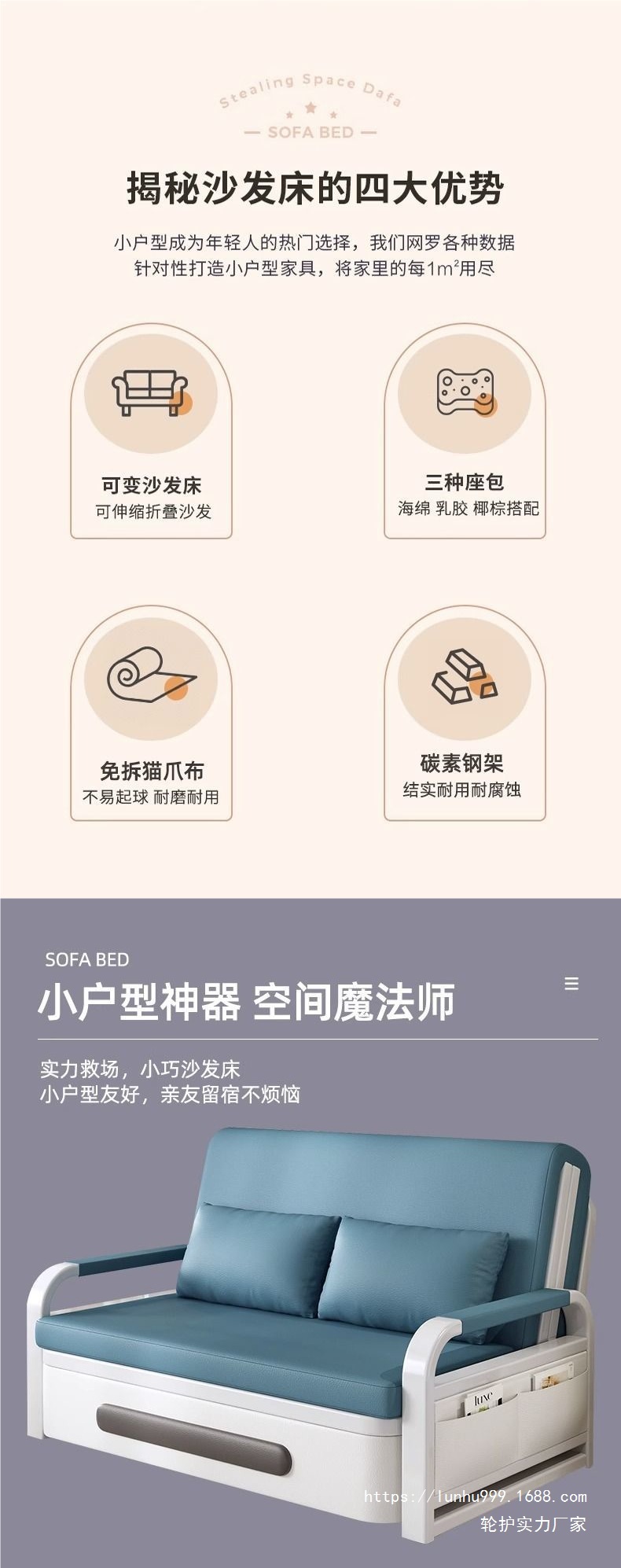 소파 베드 일체형 이중 목적 접이식 인터넷 연예인 새로운 작은 아파트 거실 발코니 다기능스토어 가기