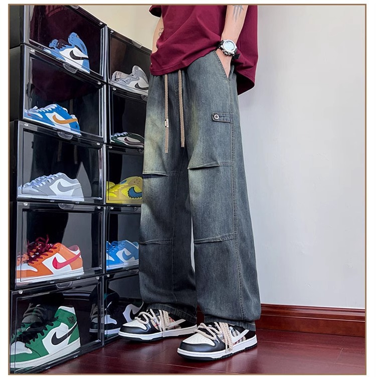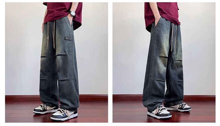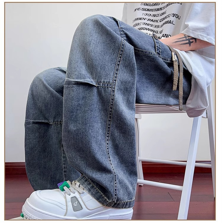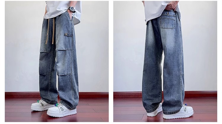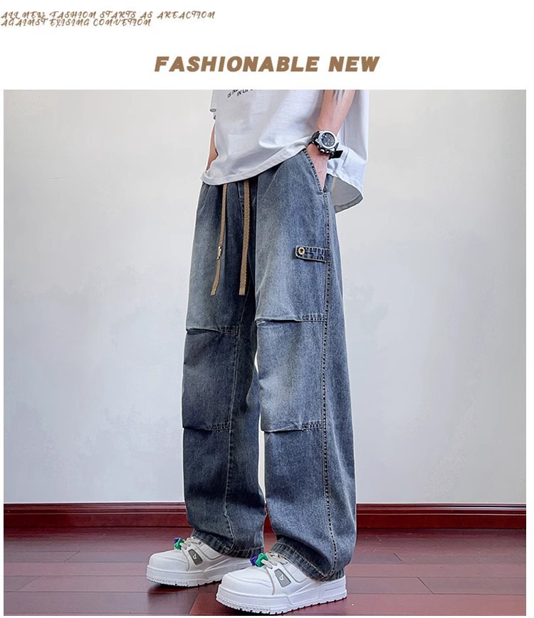 하이 스트리트 트렌디 브랜드 플리츠 청바지 남성 여름 신작 루즈 스트레이트 청소년 통기성 캐주얼 스트레이트 오버올스토어 가기