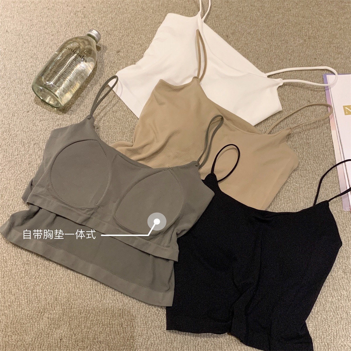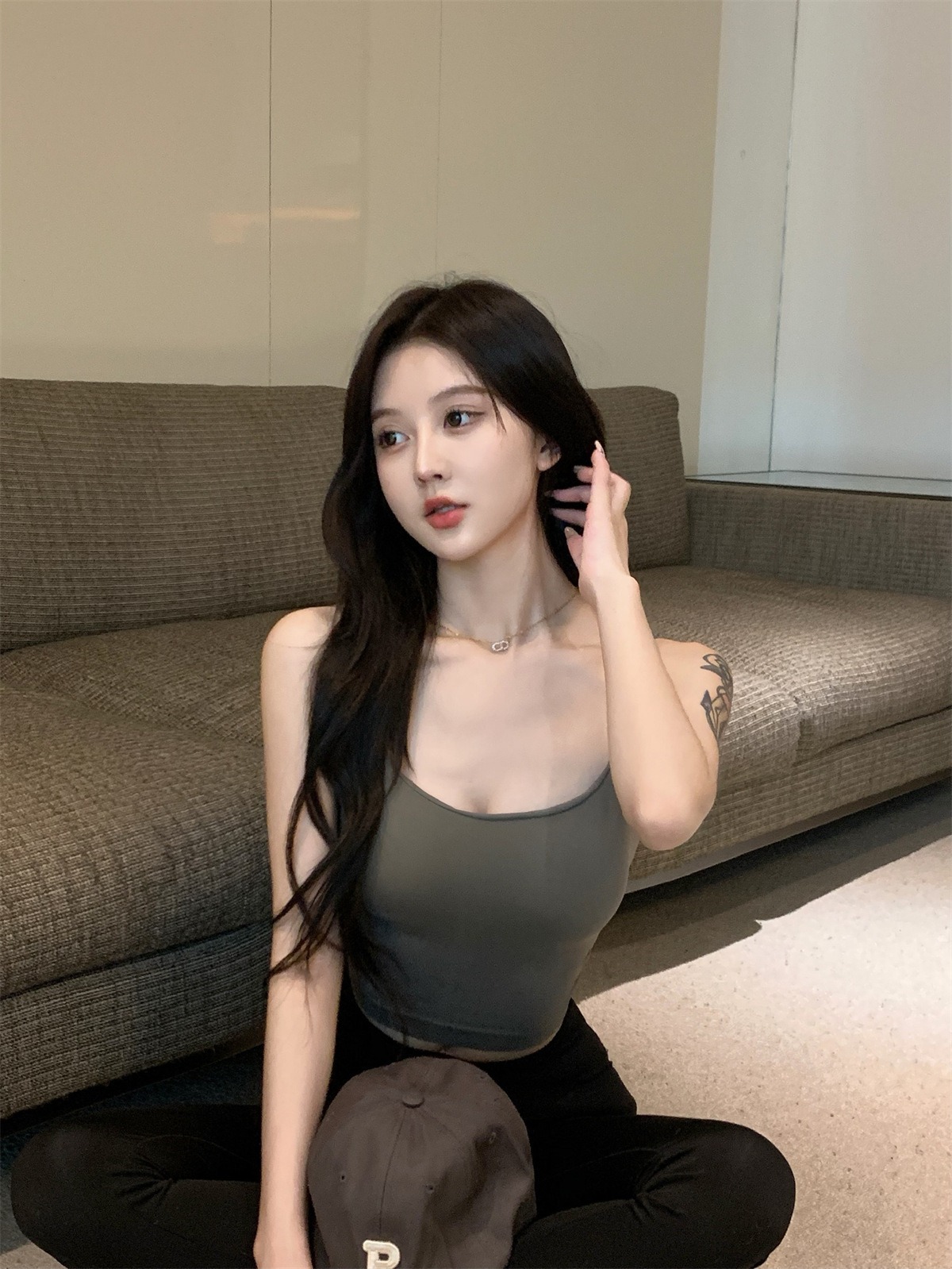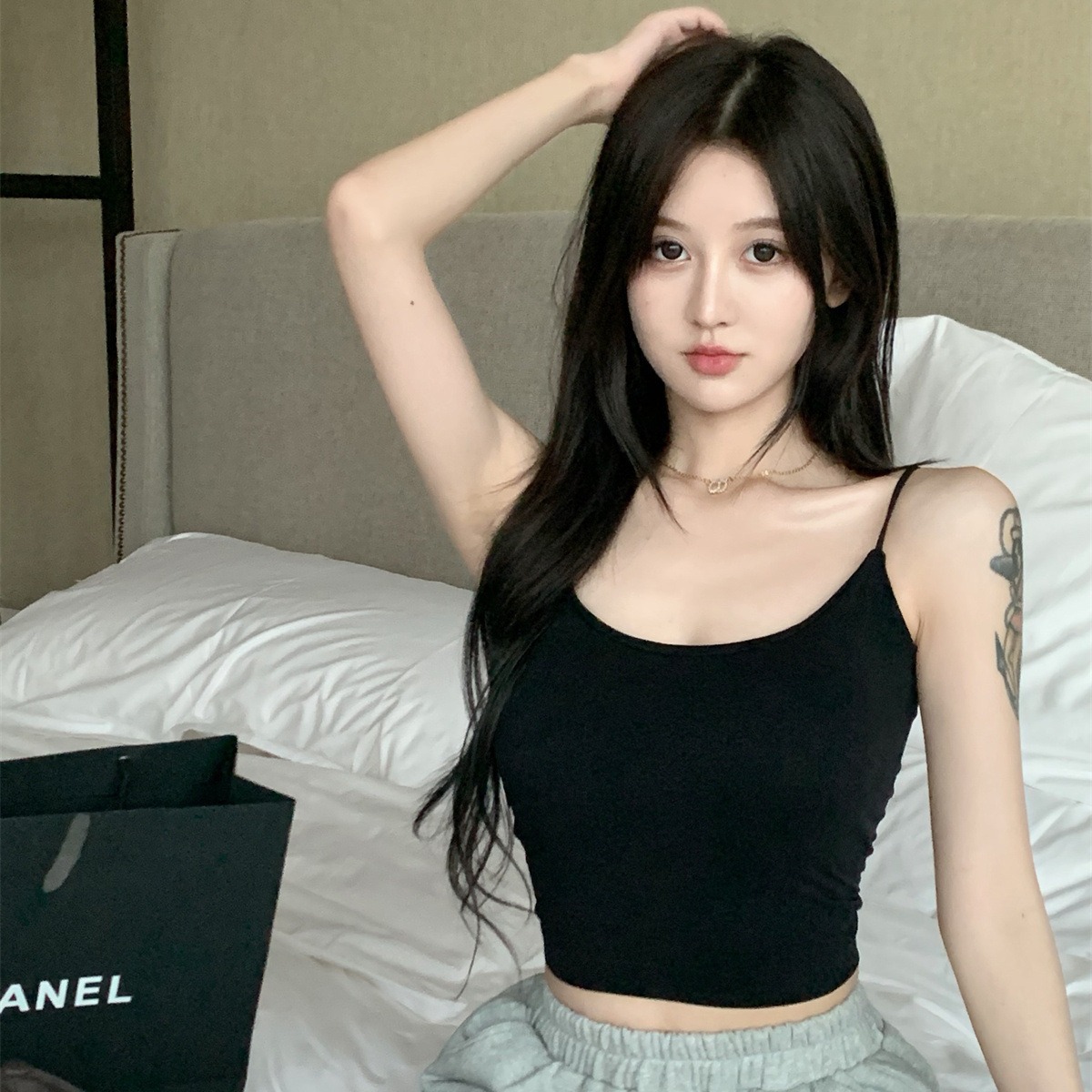 가슴 패드와 얇은 어깨 끈이 있는 섹시한 핫걸 캐미솔 여성용 아우터웨어 및 이너웨어 슬림핏 소녀 바닥 올인원 탑스토어 가기